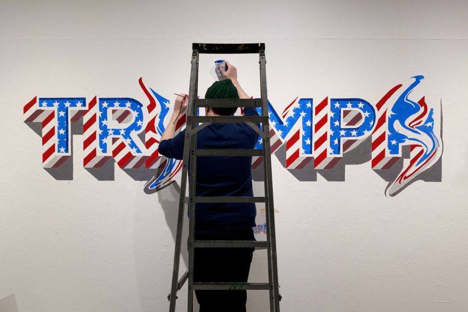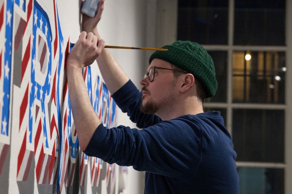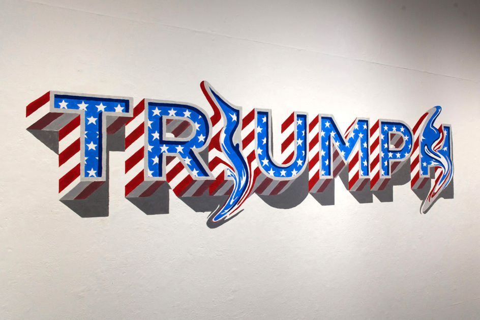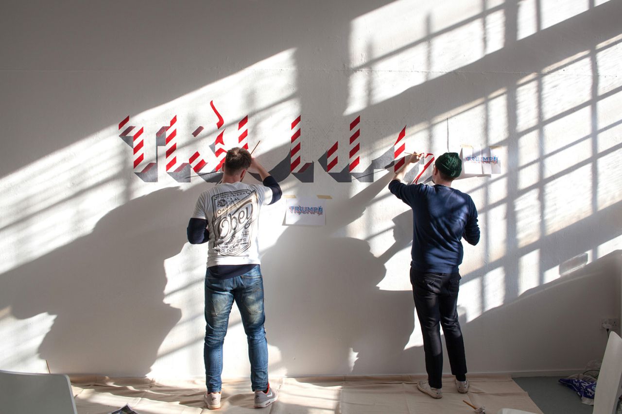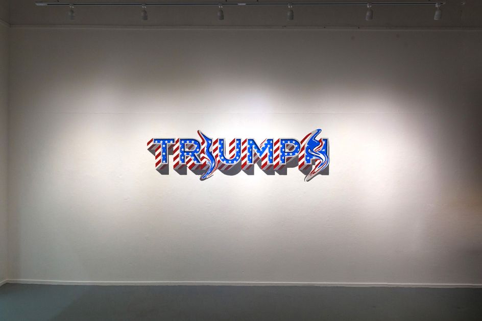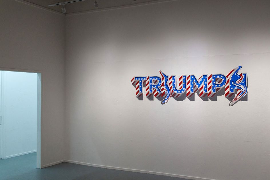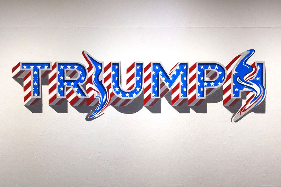 During a recent Pissed Modernism exhibition at The Patriothall Gallery in Edinburgh, designer Craig Black was commissioned to create a typographic mural entitled Triumph ≠ Trump.