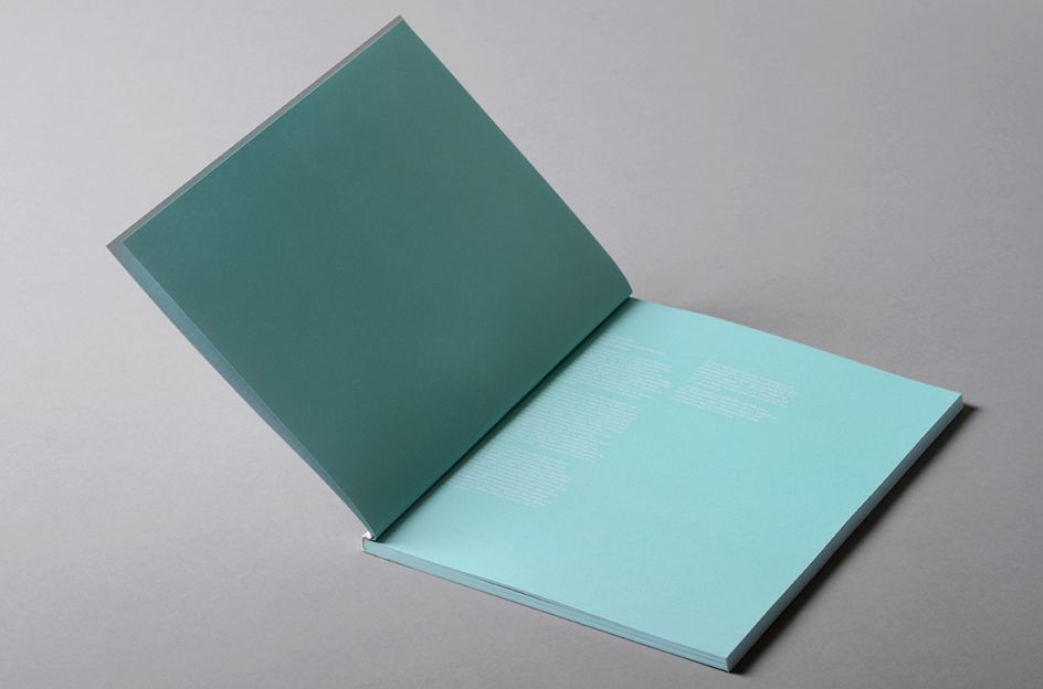 "Each colour was used to separate and identify the two books; these were then encased in a hand-folded wrap which, when unfolded, formed the exhibition poster."