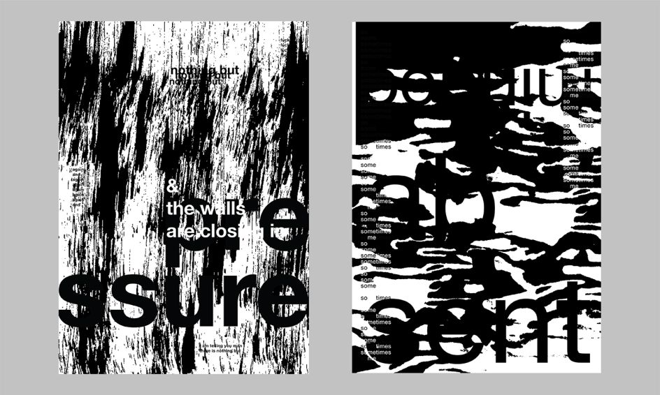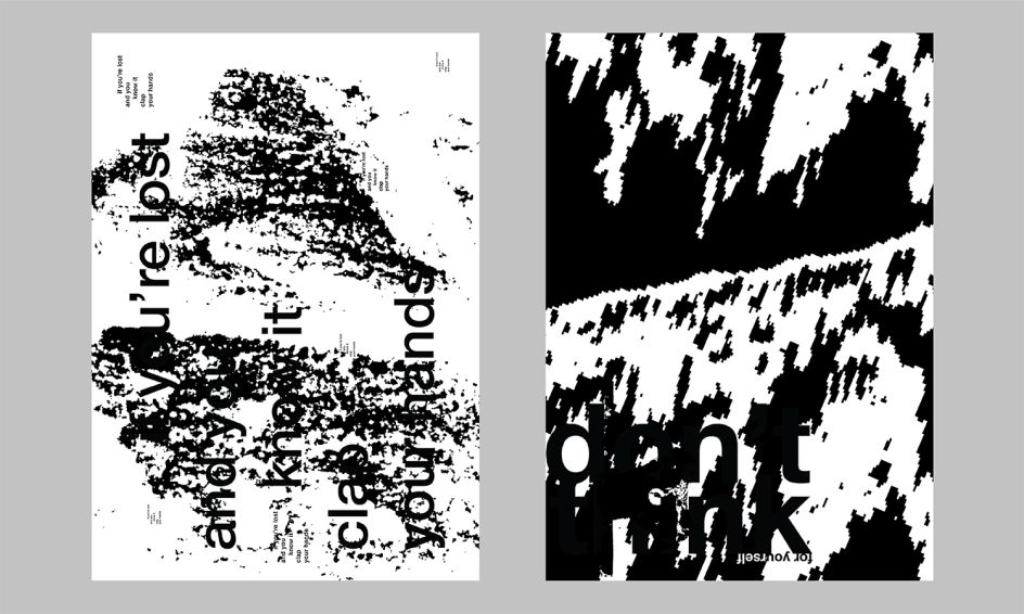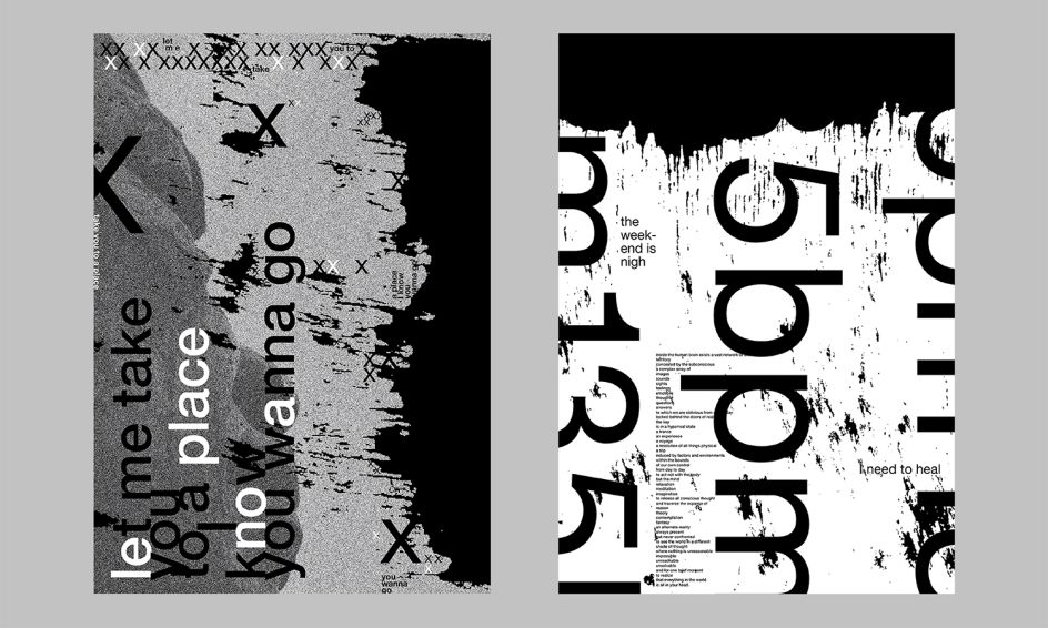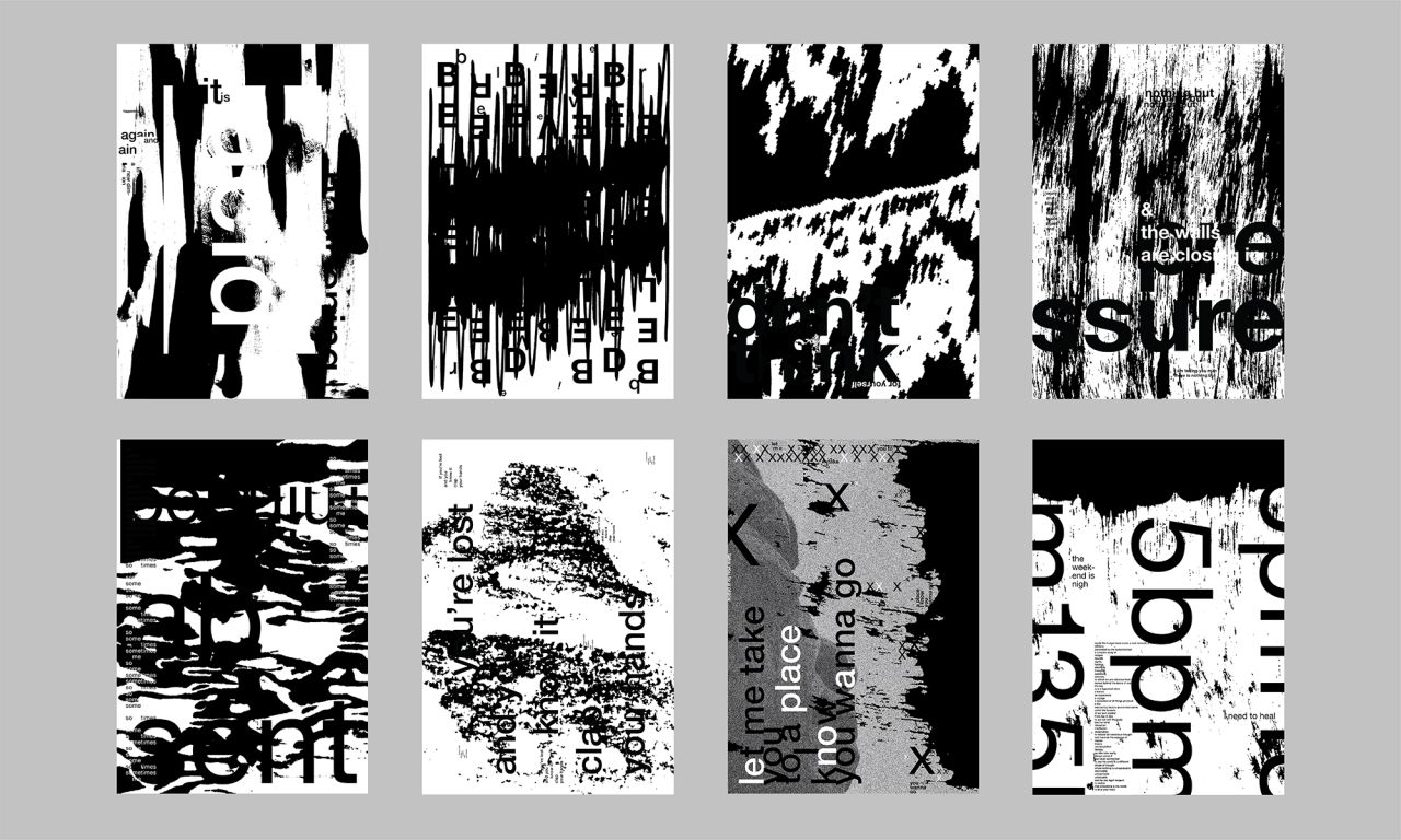 "I enjoy working with minimal design, but to balance it out I feel the urge to sometimes forget the rules, or feel the urge to break all the rules at once, no grid, minimum legibility, and just chaos. Through these poster I express obscure feelings, and social oriented messages, may it be politics or music."