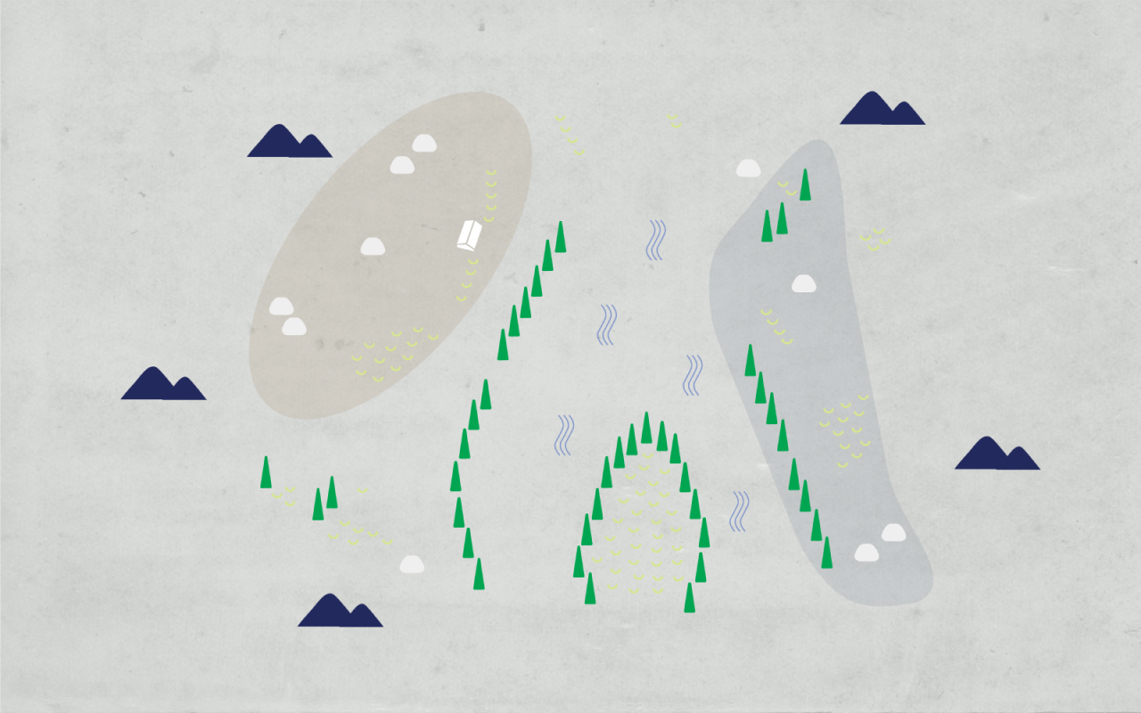Most recently, for her OĀZE project, Una has created a sound map of an imaginary island. She explains: "Unlike most sound maps that employ Google Maps or similar, this one uses digitally illustrated original map and aerial views of places such as market, harbour, villages and landscapes, initially based on real places.