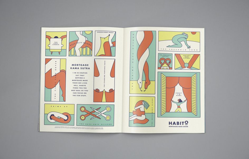 Noma Bar said: "Working on a project that pushes the boundaries for its category is always enjoyable. I think it's fresh to see a mortgage company that connects mortgage jargon with sexuality, I don't think I've seen anything like that before. Normally, my images tell a story without words, but in this project we used text along with the images, to give the overall look a comic strip feel."