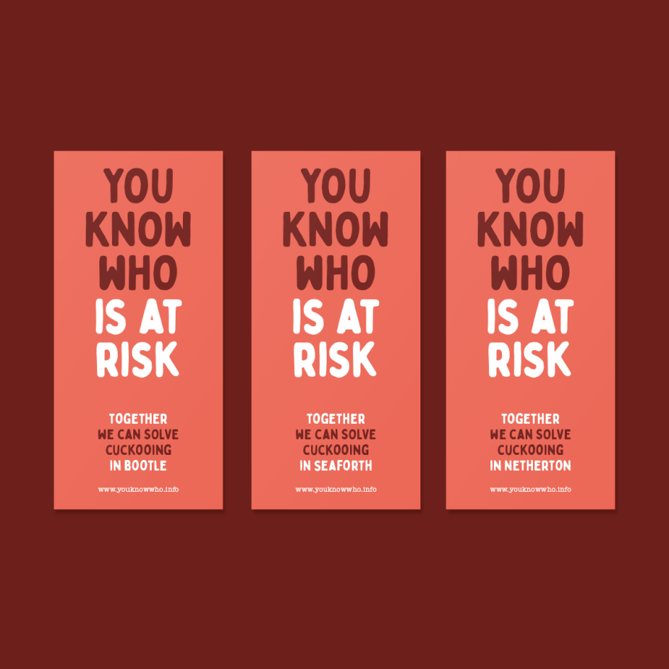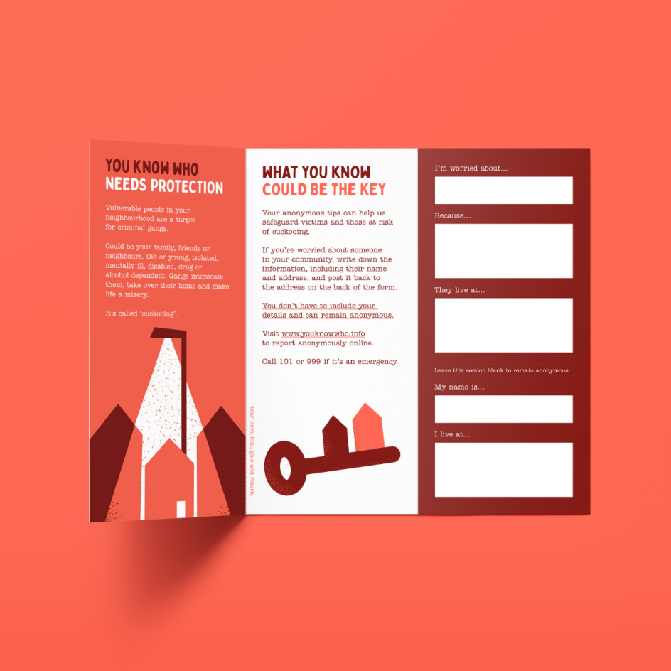 Uniform was commissioned by Merseyside Violence Reduction Partnership (VRP) to work on the strategy and creative assets for the campaign. Targeted at the Sefton area, it looks to prompt those people at risk of being exploited by criminals in their area to share information, stay safe and keep vulnerable neighbours away from harm. The scheme is a pilot, aimed at helping discern how far the VRP can encourage Sefton residents to share information and help identify vulnerable people affected by, or who could potentially be affected by cuckooing.