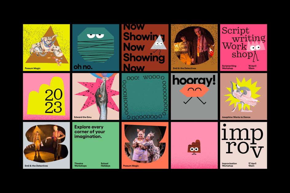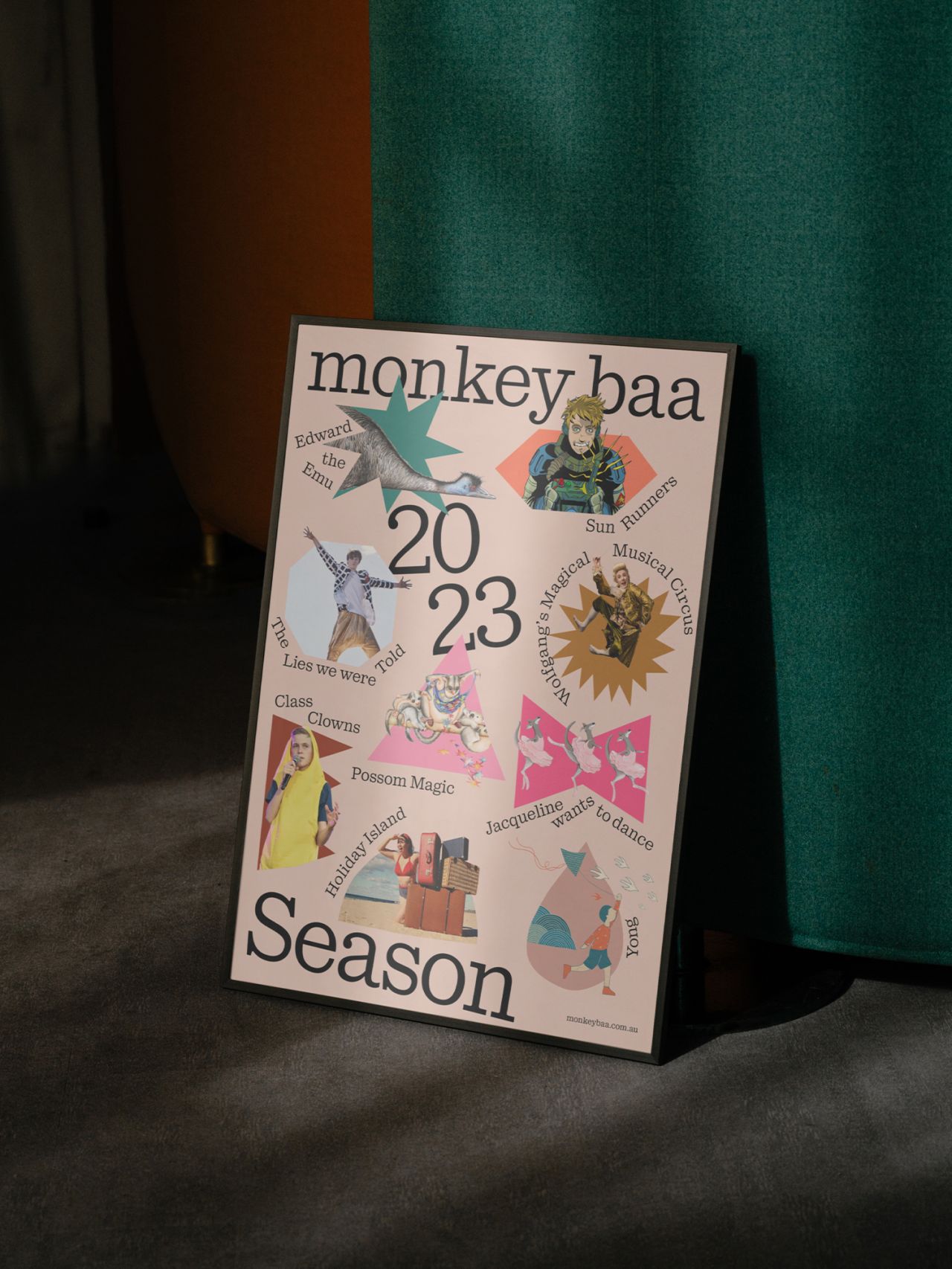 With the announcement of Monkey Baa's 2023 season, the rebrand made its mark across posters, brochures and promo materials.