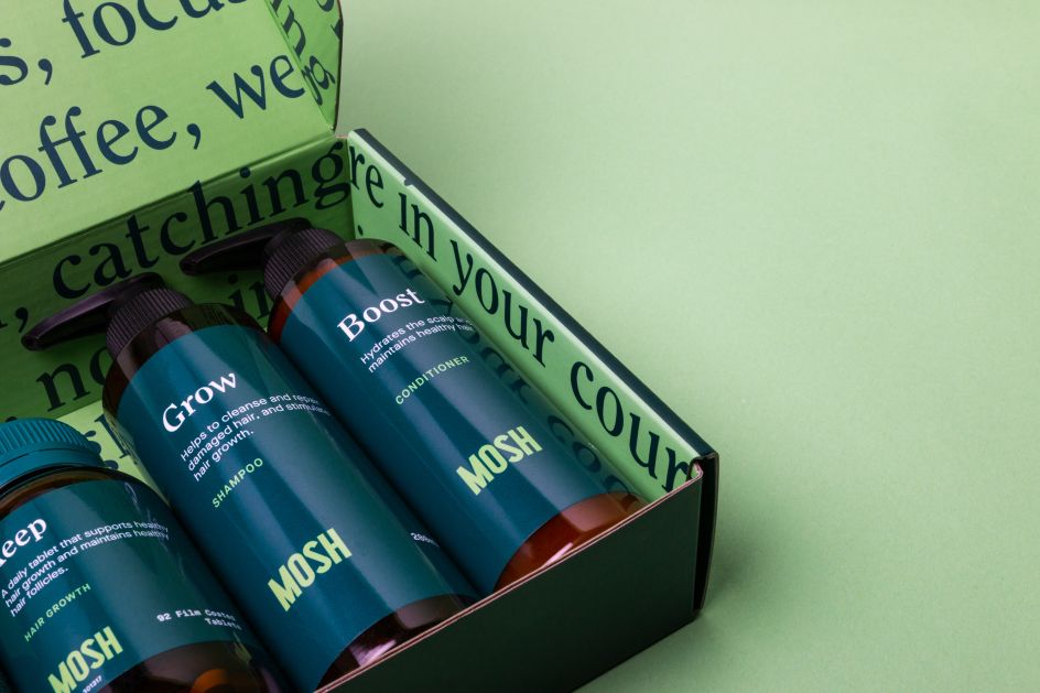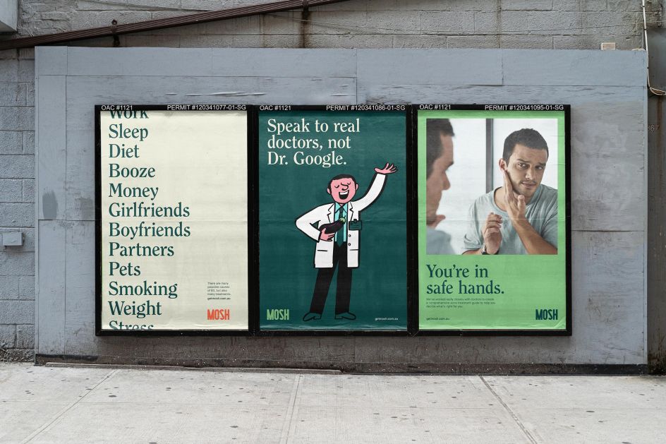 Sydney-based design studio Universal Favourite is behind the brand refresh for Mosh, an online health clinic led by experts who are helping men with issues across sex health, hair loss, skincare, and mental health.