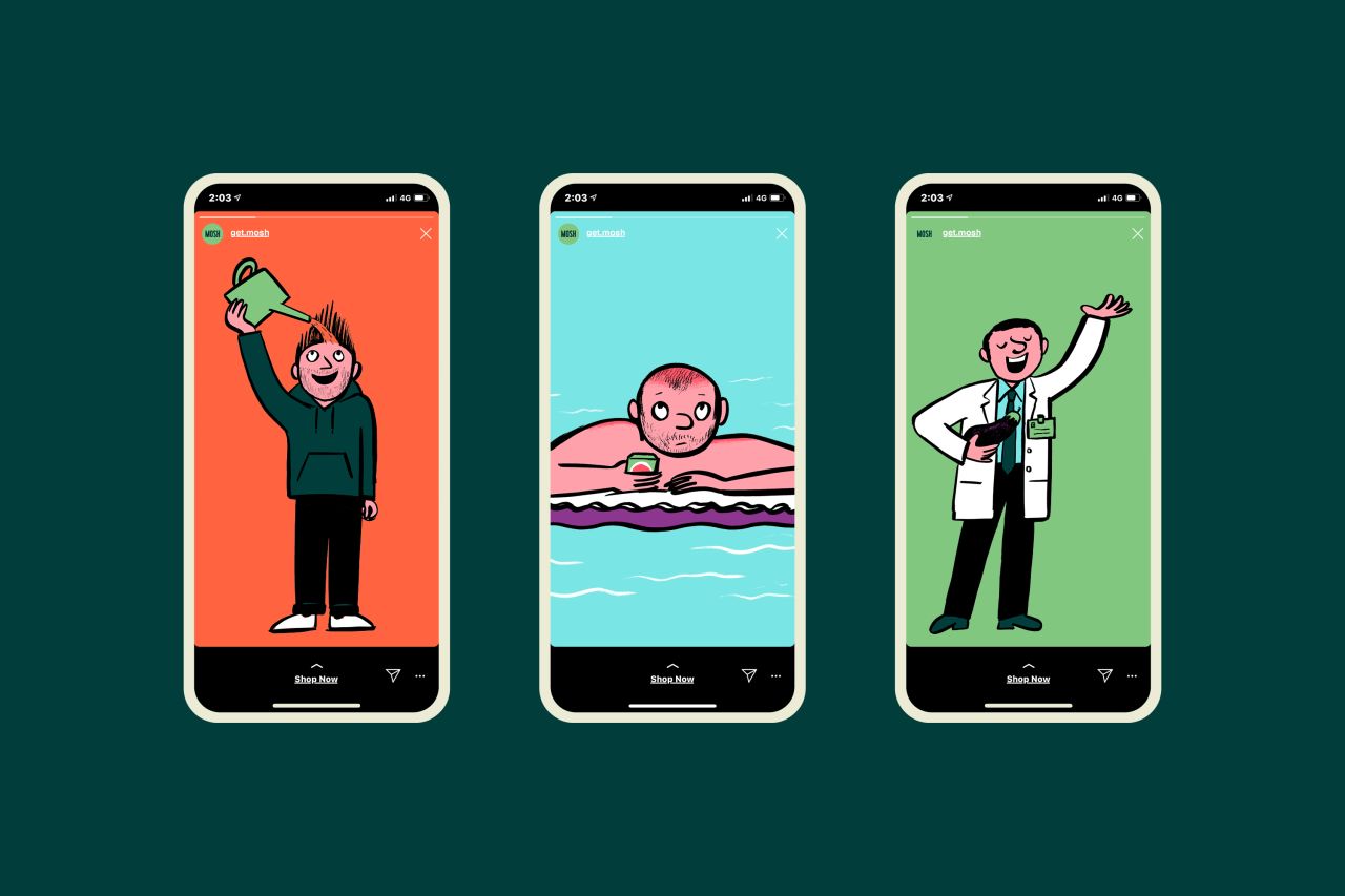 "Our aim is to disarm people; we want them to feel safe with us. It was important to create down-to-earth images that would help them connect with the brand," explains David Narunsky, co-founder of Mosh.