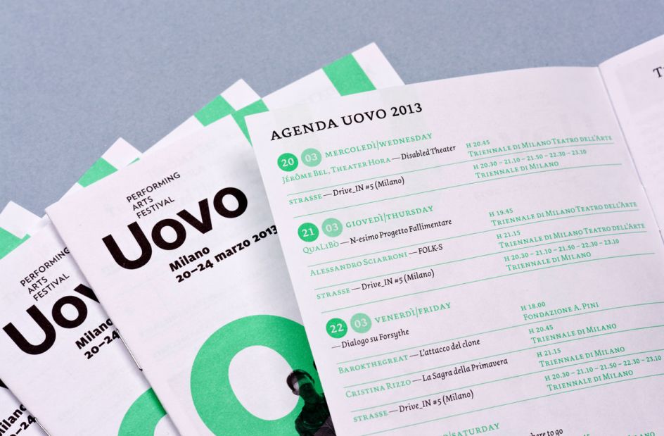 Atto works on a variety of projects: brand identity, editorial, illustration, motion graphics and web –always taking care of every little detail and going through a considered process. They also collaborate with local schools to help young designers to develop their skills, preparing them for a career in graphic design. This particular project is a redesign of a visual identity for the Uovo Performing Arts Festival. Designed at Zetalab.