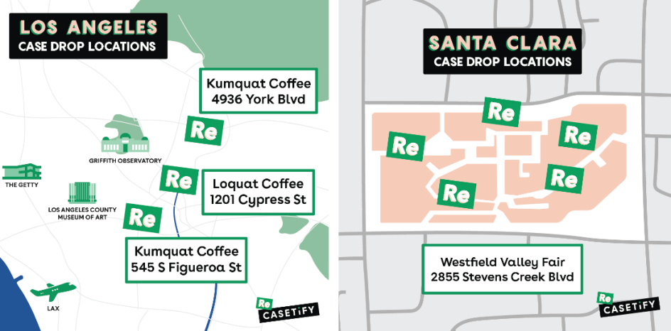 To further celebrate and support Earth Month, CASETiFY has also installed Re/CASETiFY Bins all over Los Angeles. People can deposit and recycle their old phone cases in these special bins and scan the QR code for a future discount online. All phone cases dropped off will be upcycled and used to create new CASETiFY accessories and works of art.