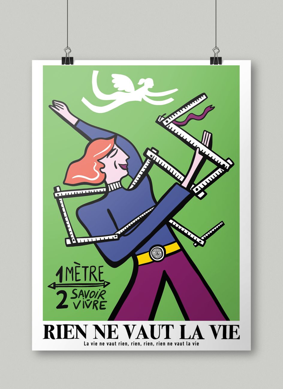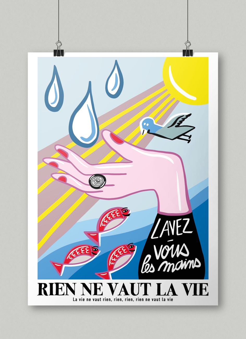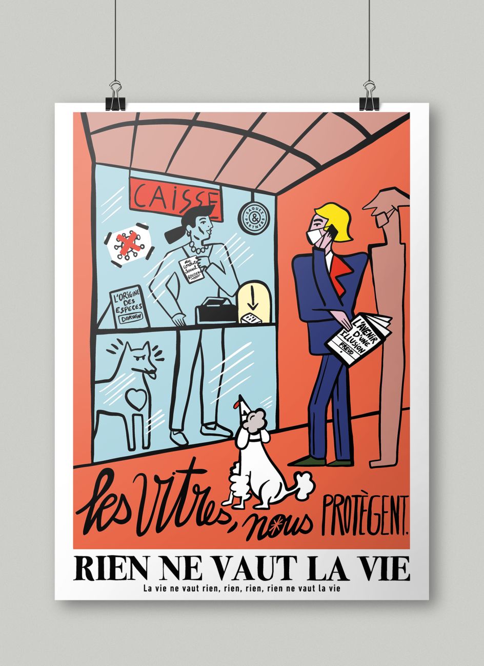 Since mid-May, the posters have been handed out free-of-charge to the shop owners of Saint-Ouen-sur-Seine. "They add a touch of style to the safety rules," adds Olivier. "Serious in its content and powerful in its form, the powerful graphic design mixed with the surprising tone have revitalised the shopping streets and the checkout lines. It is a token of attention and appreciation, in short, a hymn to life."
