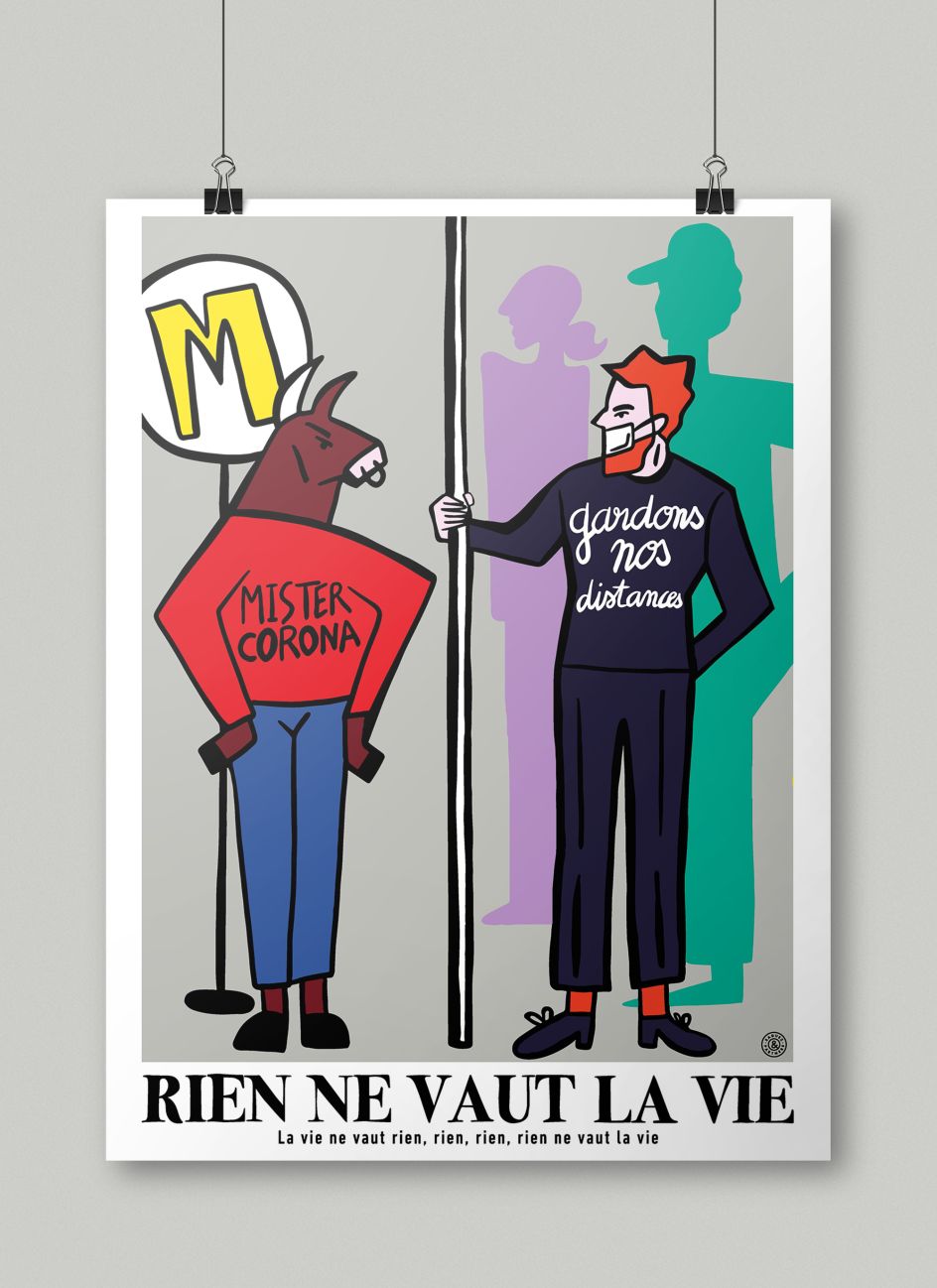 Graphic designer and illustrator Marine Belkebir was inspired by the lyrics of an Alain Souchon song when she created this amusing series of posters to remind us to stay safe during the pandemic.