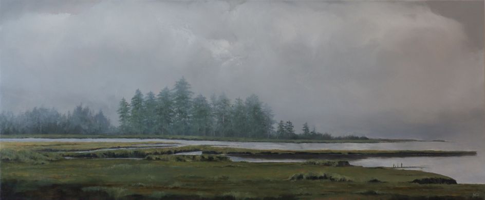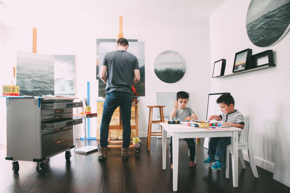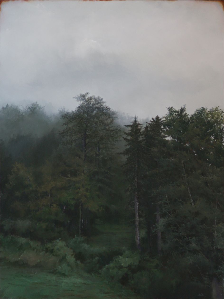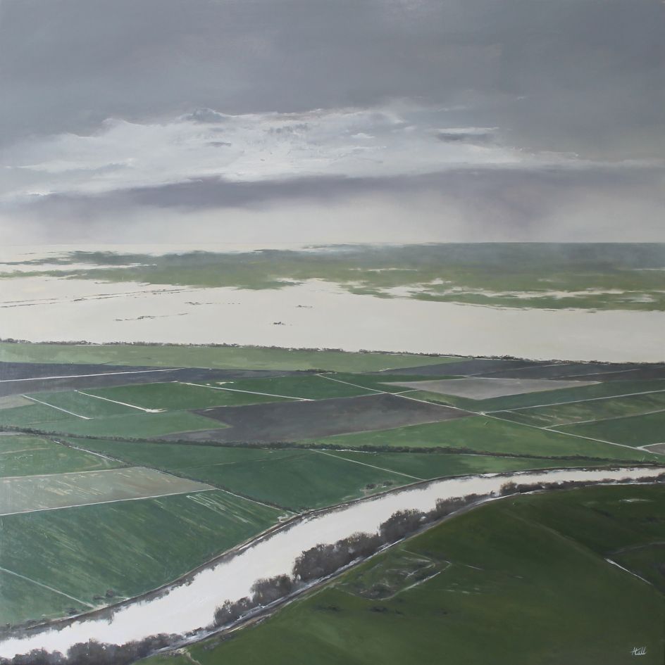 For his series Upon Shoulders, American artist Adam Hall was inspired by a classic expression from Isaac Newton: "If I have seen further, it is by standing on the shoulders of giants." From a completely different perspective, many of his paintings are therefore from a higher point of view, as though a child was on your shoulders, looking out upon the vast horizon.