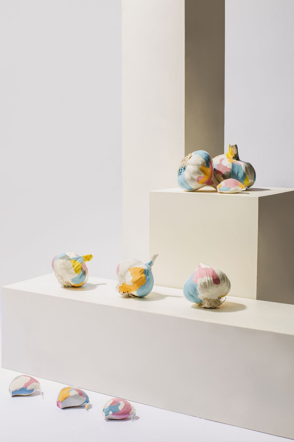 In the photography series, Vegetable Canvas, the duo delicately treats vegetables as real canvases, using colour as an expression of different forms and shapes. "The result is a visual representation of unique structures that are placed into minimalistic scenes in order to enhance and focus the viewer's attention on the new singular plasticity created."