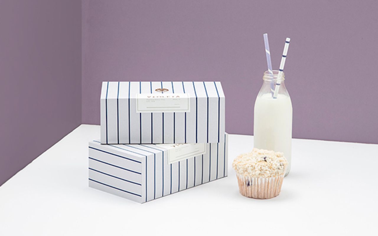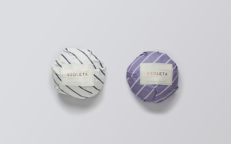 "We multiplied the dove by three in celebration of Violeta's three decades of fantastic bread. We kept the lines depicting the Rio de la Plata and used them not only in the icon but all over the brand in four different patterned textures. We chose violet to match the naming and to keep the brand fresh and feminine. The copper foil is not only a nod towards Violeta's excellence, but it also refers to the toasty colour of bread right after it leaves the oven."