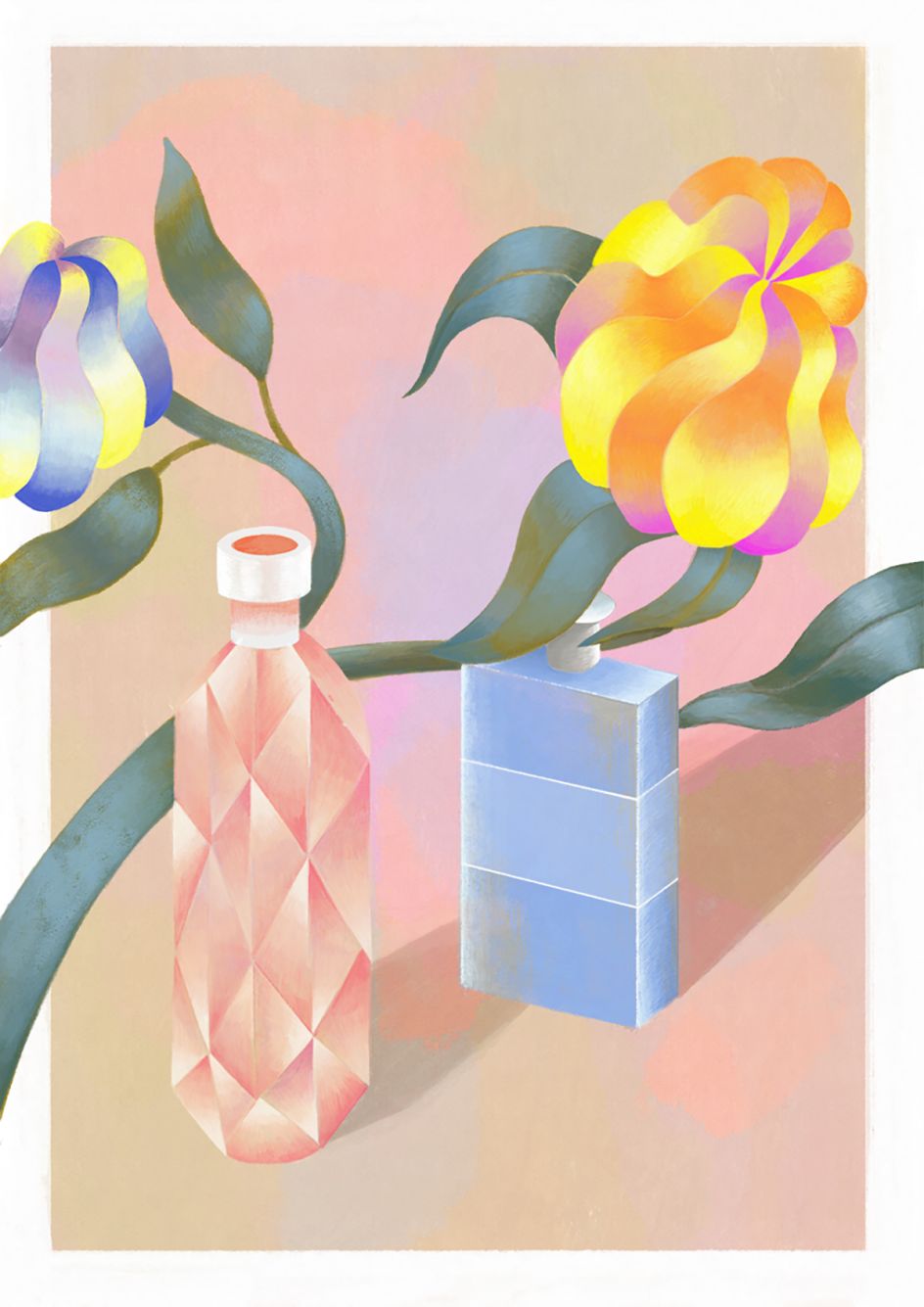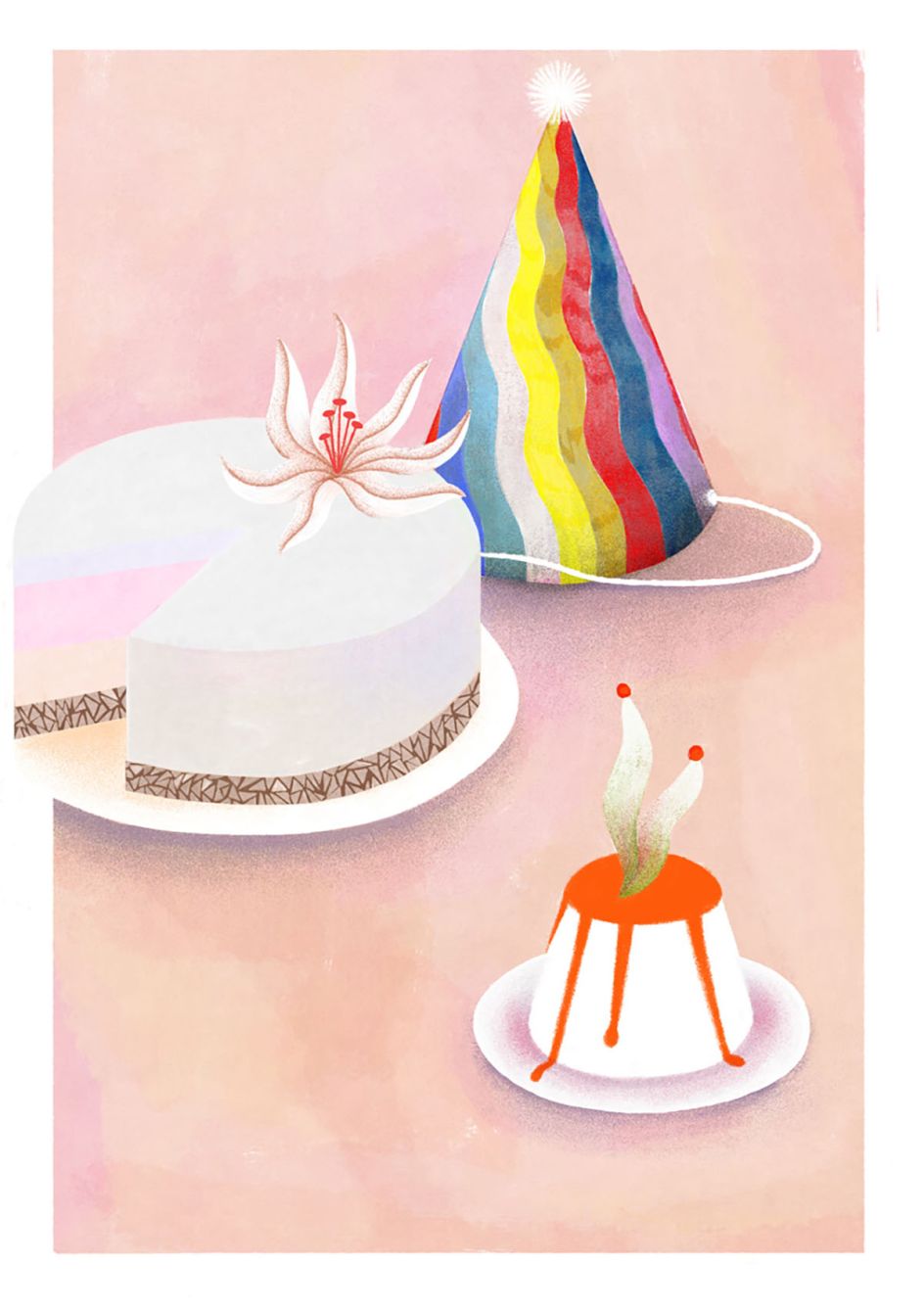 "My work born from the constant attempt to amalgamate my two main interests, art and illustration; giving the illustrations materiality usually absent in the digital world," she says. "I like to wander between the abstract, the classical composition of still life and the portrait. Recently I enjoy drawing food, especially sweet delicacies."