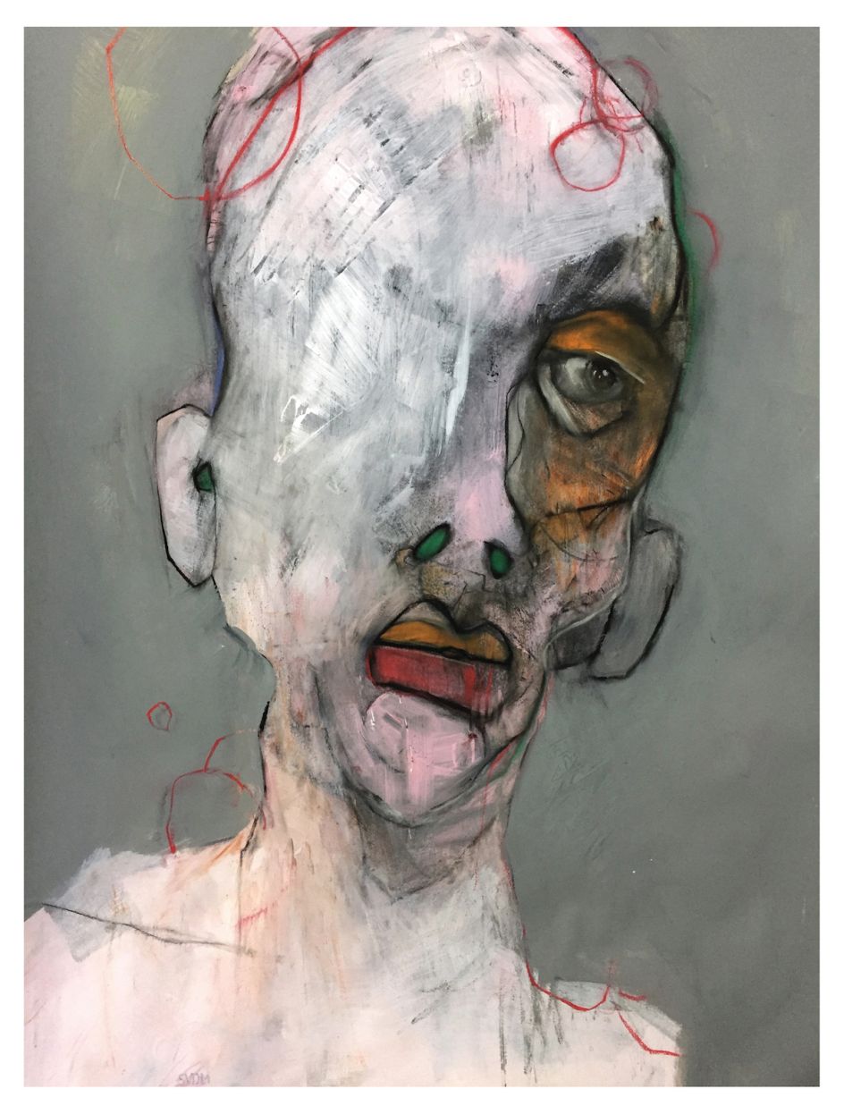 The portraits are at once arresting, intriguing and oddly attractive. Each portrait has a delicate, melancholic expression with a coarse and visceral application of paint. Each face offers some deeply personal recognition of the subject even though the features are blurred to the point of anonymity.