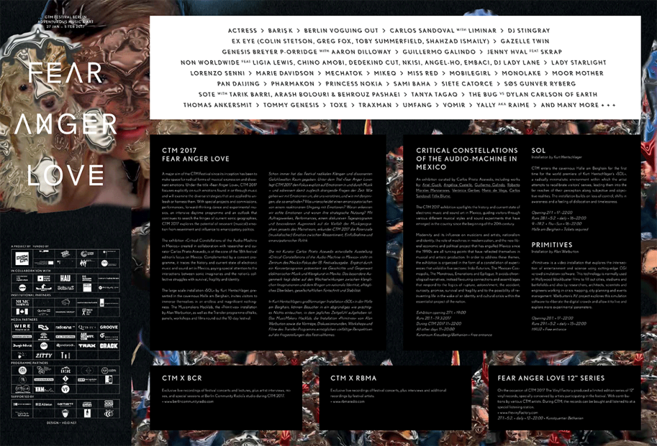 “Fear, Anger, Love” was the theme of this year’s ever-extraordinary celebration of electronic music, CTM, and the Berlin-based festival made itself known through some equally extraordinary graphics.