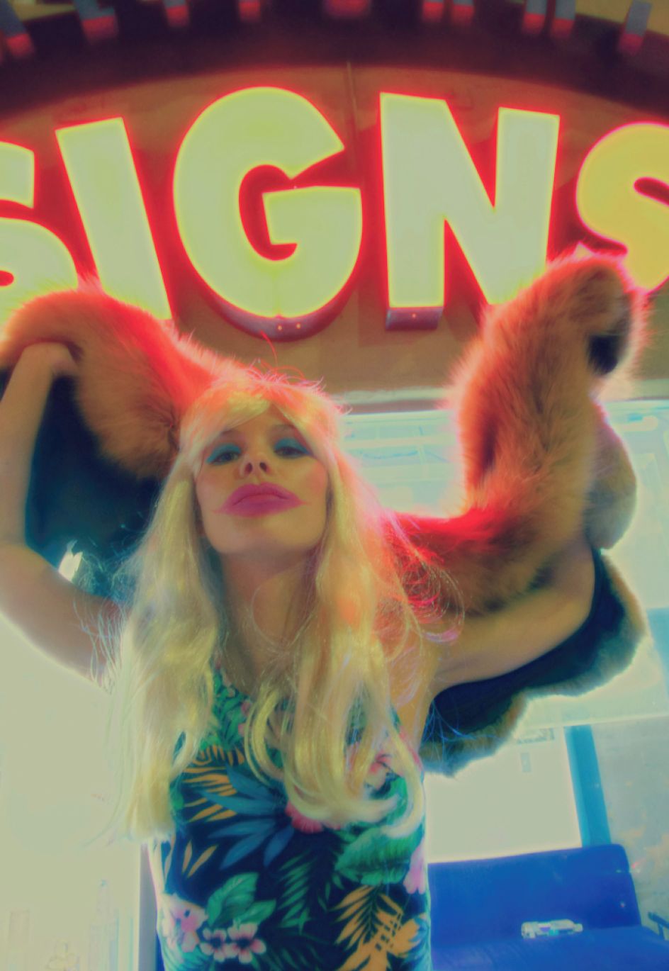 Lang explains: "One day, when looking for an apartment to rent in West Hollywood, this creature was sat on the couch with a scraggly peroxide wig and unintentionally smeared makeup, tapping her pleather boot heel repeatedly on the floor while puffing hard on a cigarette. She was only to be known as the enigma, Natale.