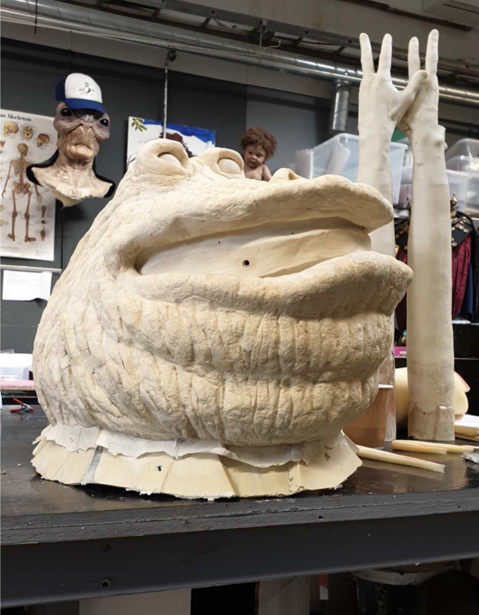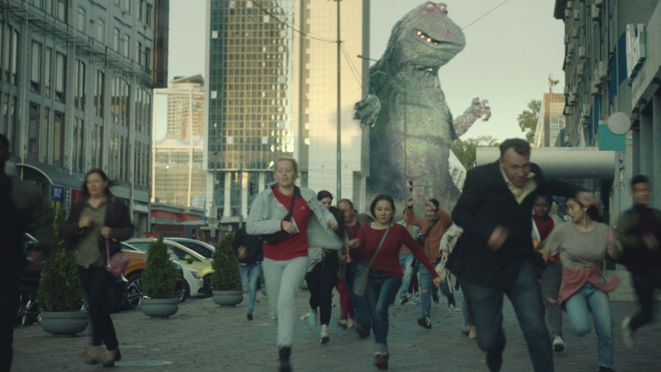 How did the dinosaur come to life? After some initial concepts in Photoshop, the Vegamama suit was modelled in 3D and clay and then crafted using foam and latex, along with clever animatronics to allow face and eye movement. The body was sprayed with latex and sculpted foam to get the authentic Kaiju texture. After the whole body was assembled, Vegamama was spray-painted and worn by an actor.