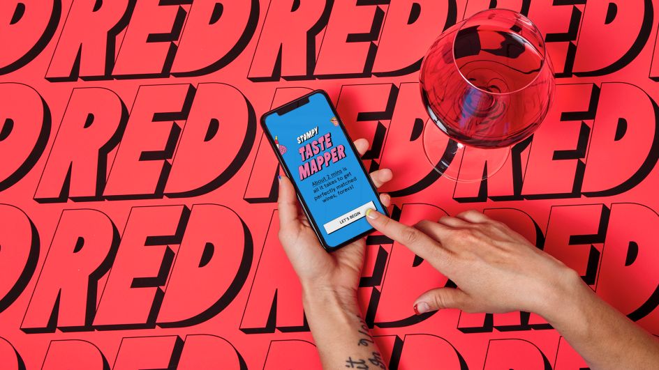 That down-to-earth feeling has also been achieved through playful illustrations by Finnish artist Tommy Tarvonen, transformed into a set of fun stickers. "They help bring in joy and show that Stompy doesn't take itself too seriously," adds Jessica. The happiness continues in the copy and website design, too. "The wine matching quiz, for example, uses fun and relatable terminology anyone can understand."