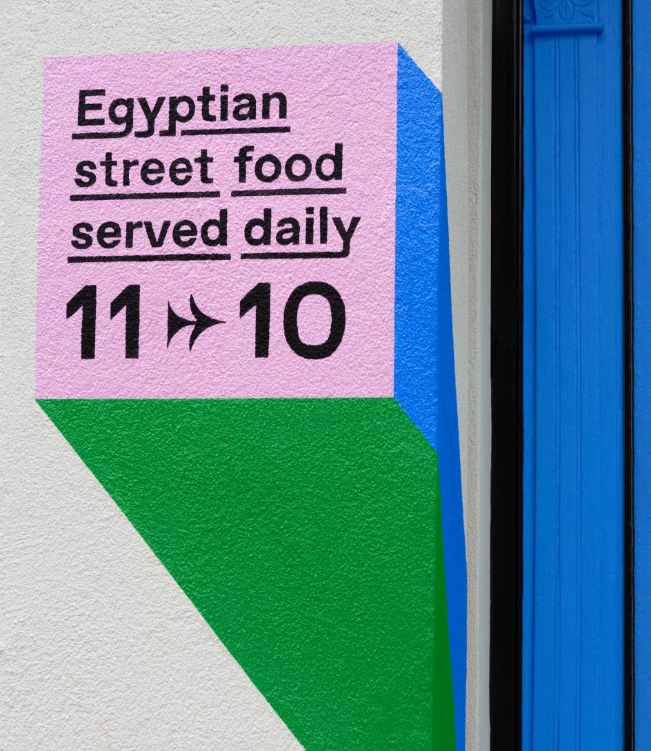 &Walsh layered this type with modern versions of patterns and illustrations inspired by the streets of Cairo. "Just like their food is a modern twist on traditional classics, we aimed to do this with the visual language," adds &Walsh.