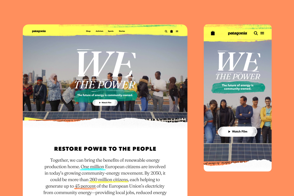 We The Power is a new film and initiative by Patagonia that imagines a future of citizen-led, community energy schemes to help combat energy poverty. To prepare for its launch, the outdoor brand teamed up with San Francisco-based studio Upperquad to craft an identity that celebrates the spirit of the movement.