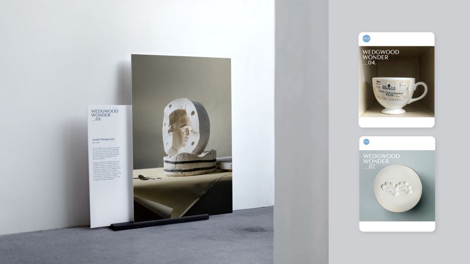 For a brand as well-known as Wedgwood – with its own distinctive visual assets to draw inspiration from – it would be criminal not to refer to what people are familiar with. In this case, it's the iconic light blue jasper first invented by Wedgwood founder Josiah Wedgwood in 1774. This colour is so famous that it has even given rise to the expression 'Wedgwood Blue' and has become a shorthand for the brand worldwide.