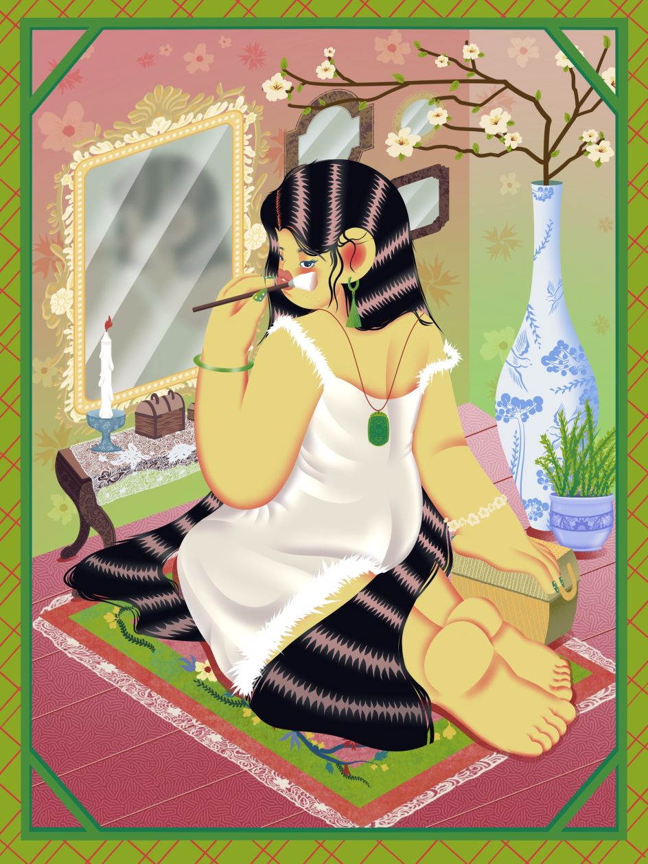 Amongst this, womanhood is another recurring element in Wei's work. "As a woman, I am proud of who I am," she says. "I always want to emphasise that in my paintings. The stories of different women give me strength and inspiration to create.