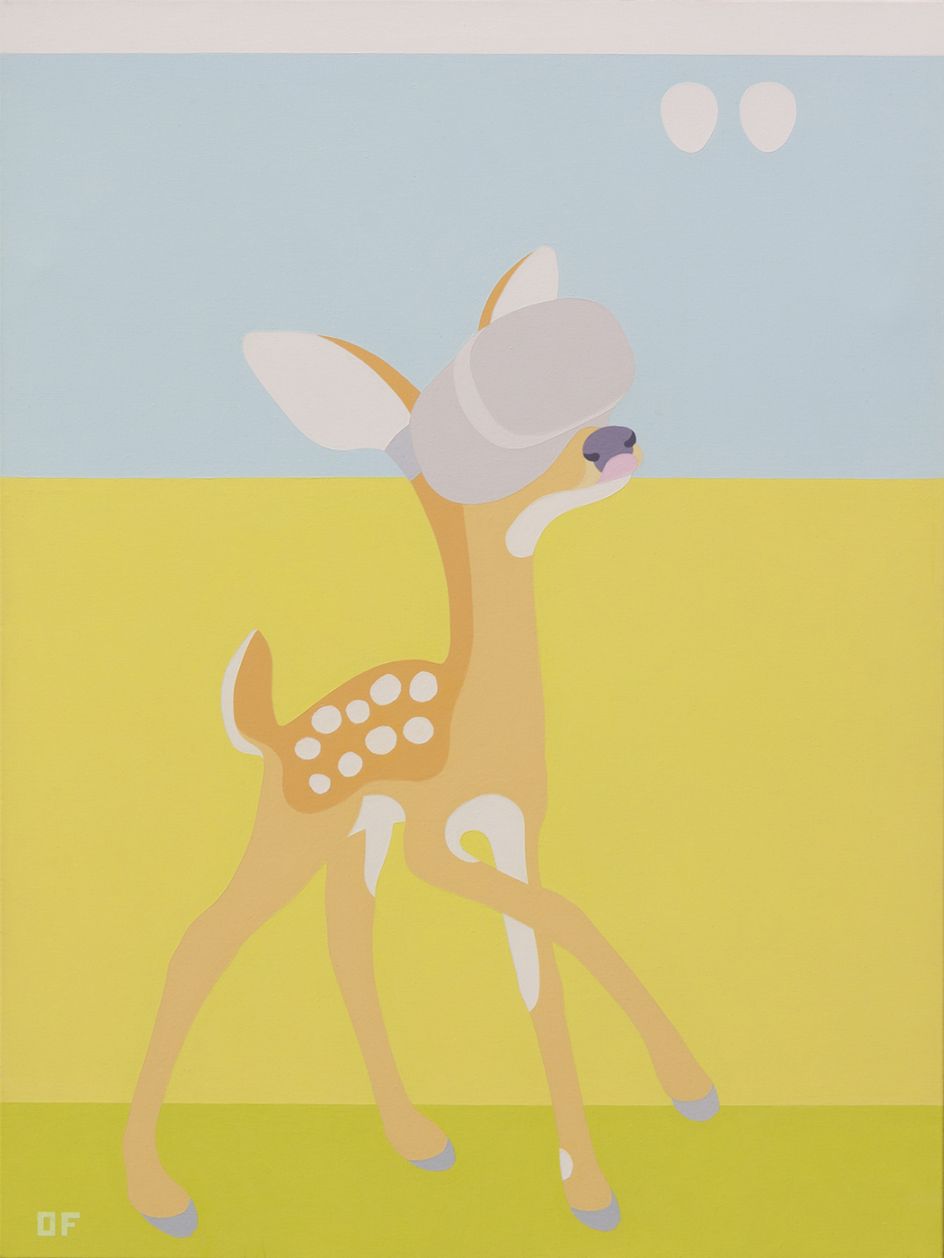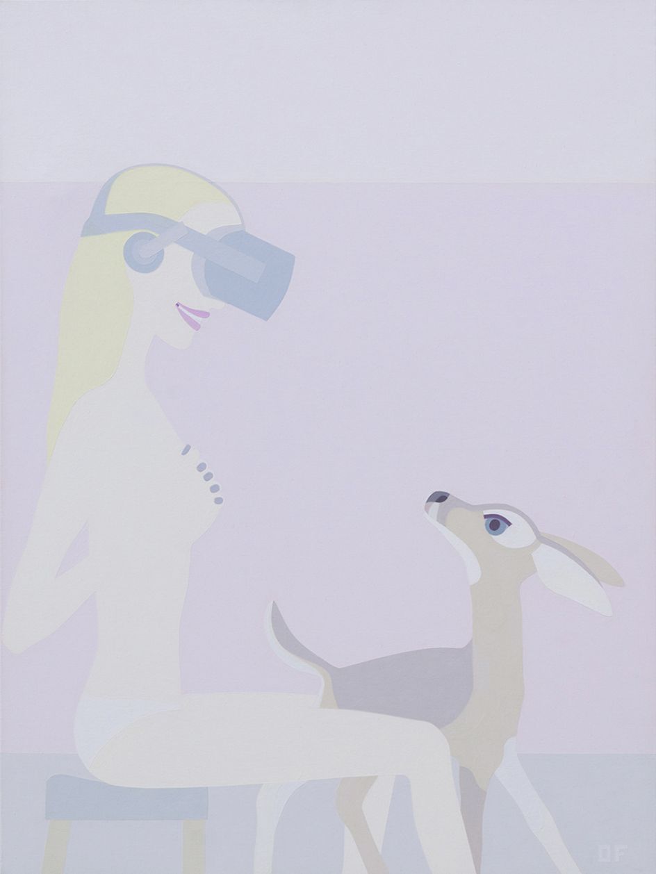 Her use of deer within her images (sometimes these sport VR headsets) hints at the idea of the corruption of nature, perhaps, and evokes ideas of fairytales, too. For the artist, though, the baby deer also represents the “inner child”—one “ mesmerised with the perfection of the tech, digital and virtual world.”