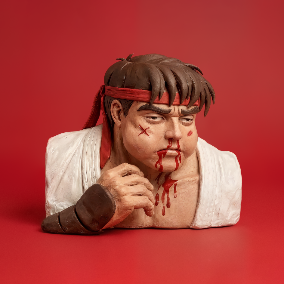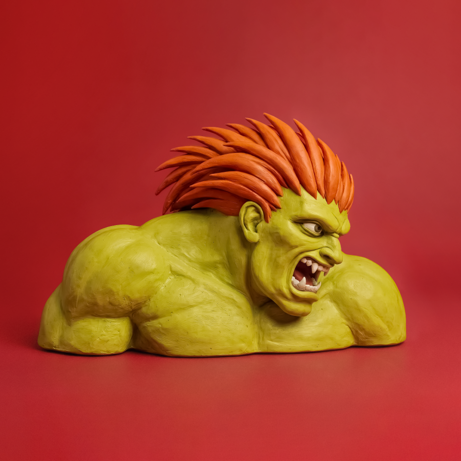 I'll be honest with you. The moment I saw these sculptures, I let out an involuntary noise. Something between a gasp and a chuckle. Because there, rendered in three dimensions, was a face I hadn't thought about in years. Battered, swollen-eyed, defeated. Those old pals of mine – Ryu, Guile and, of course, dear Blanka. Their losing portraits from Street Fighter II, brought back to life in physical form.