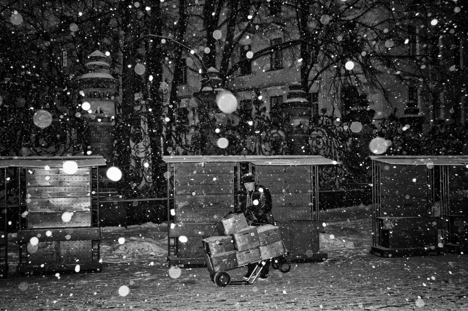 "I have always loved the snow, I just love how it can change the landscape of cities, transform the light, and even the mood. When it’s a true winter wonderland, it makes you do a double-take to make sure you are on the right Street, Ulitsa, Straße or Strada. Winter is coming, you’d better wrap up warm."