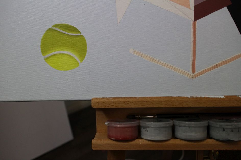 "He further draws on these physical boundaries with the use of slick shades; emotional and intellectual barriers from the oncoming stares. In the surrounding negative space, we see thin copper wires shooting through the void. Despite their more engineered nature, symmetry and balance is apparent in their movement as they penetrate the space and figures alike; a unique network developing in each composition. The wolf is literally connected but what does this mean? Are the wires forming around him as a vine does a tree, or is he building and maintaining this connection himself?"