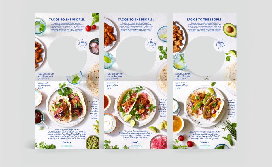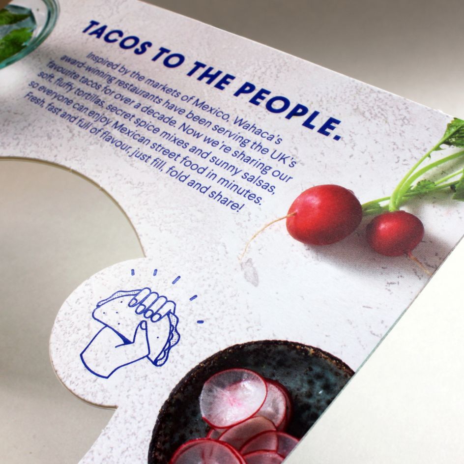 But Rather than focus on ethnicity and accepted Latin American design cues, the design team decided to hero the eating experience itself. Grant adds: "We wanted to celebrate the sense of occasion, the ritual, the format. These tacos are the real deal. And by referencing the brand and identity work that we did in the restaurant space, we have created a sense of cohesion that will engender trust and confidence in consumers perusing the supermarket aisle."