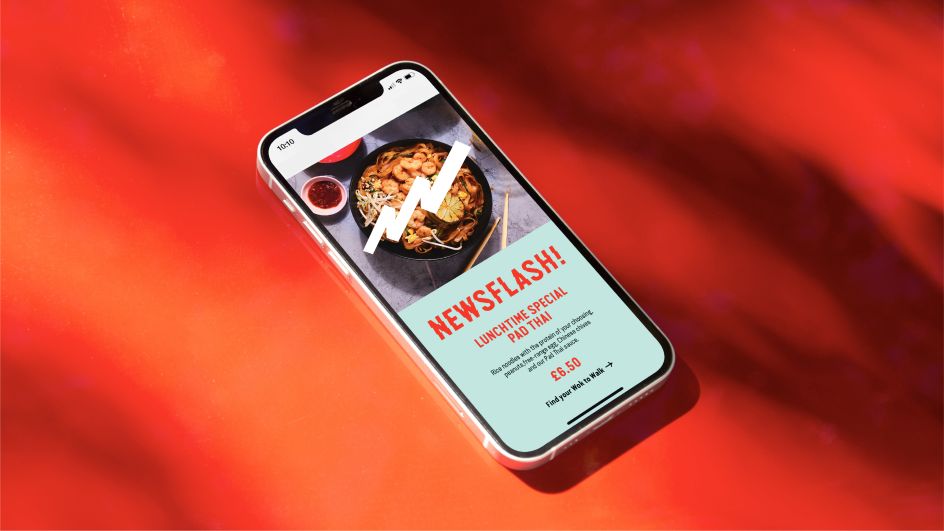 London studio Without is behind a brand refresh for Wok to Walk, helping the takeaway chain to reposition itself as a destination for quality fast food. At its heart is a dynamic logo of a wok with a lightning bolt that doubles as a signature 'W'.