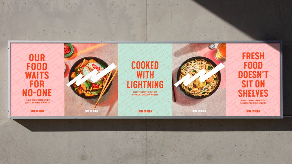 Roly Grant from Without adds, "Wok to Walk is special – fast food that's fresh from the flame, not sat in packaging all day. Lightning fast and full of attitude, it deserved a bold mark, energetic imagery and a new pride in the quality of what they create."