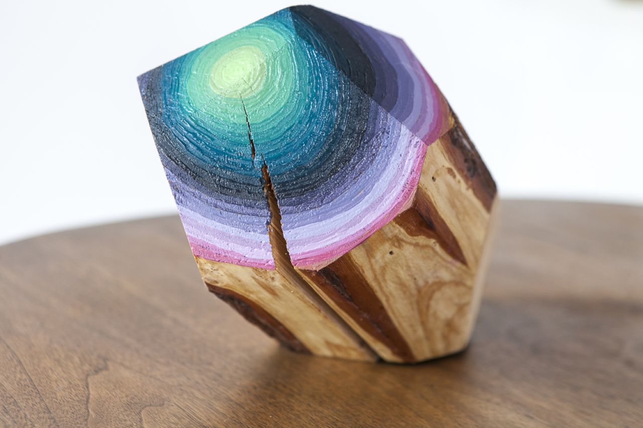 In her series Woodrocks, Californian artist Victoria Wagner loves to slice reclaimed chunks of wood into geometric shapes, before painting them to resemble beautiful gemstones. Using layers of different coloured oil paint, and following the natural grain of the wood, the resulting sculptures mimic various natural elements, such as sunsets or landscapes.