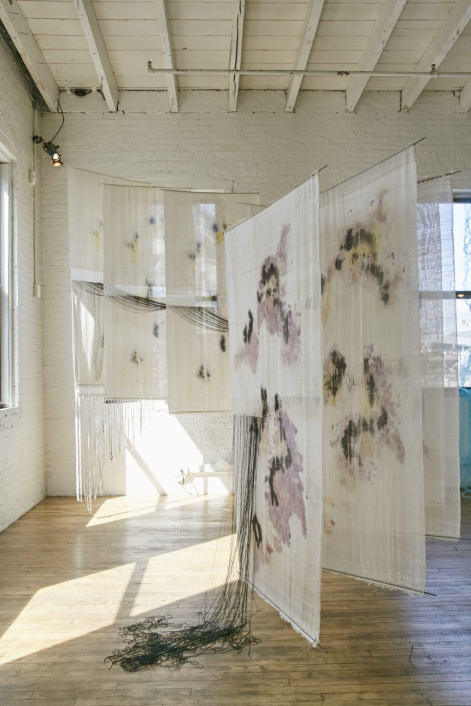 If you're looking for a little extra inspiration this morning, then Victoria Manganiello's incredible abstract paintings won't disappoint. Created by spinning, dyeing and weaving her canvases, the Brooklyn-based designer and textile consultant uses materials like synthetic and natural, self-mixed dyes, cotton and silk to craft her unique artworks.