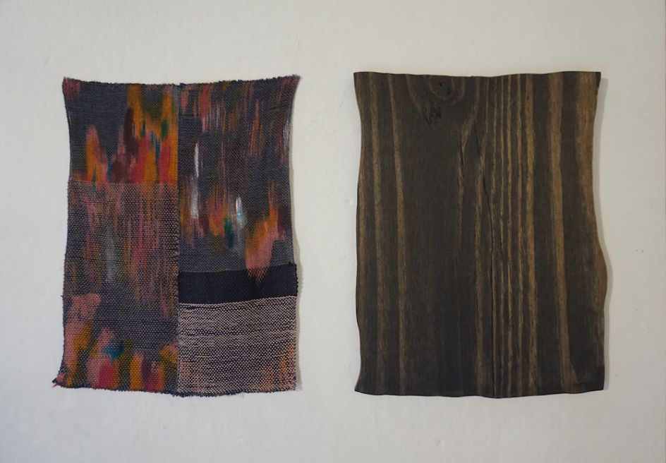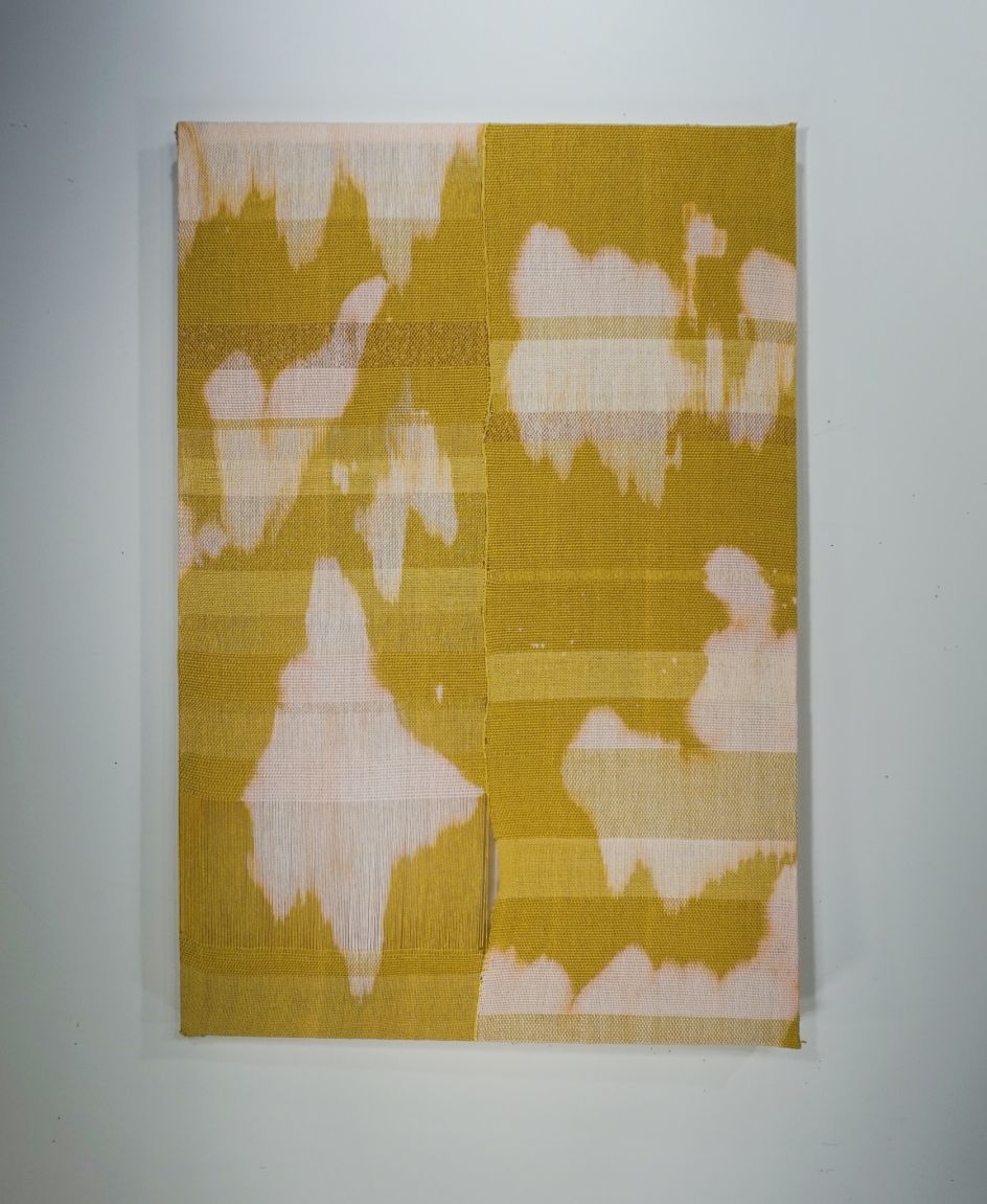 "The act of weaving is linear also; however, I deviate from that prescribed path, utilising colour, tension, and density to take timelines off the straight and into the abstract path, curved by the forces of mass and gravity I am guided."