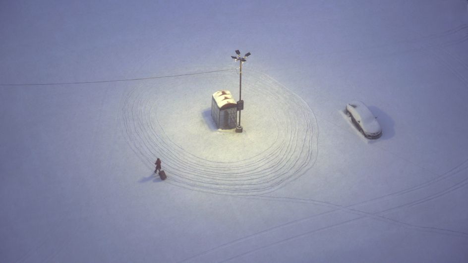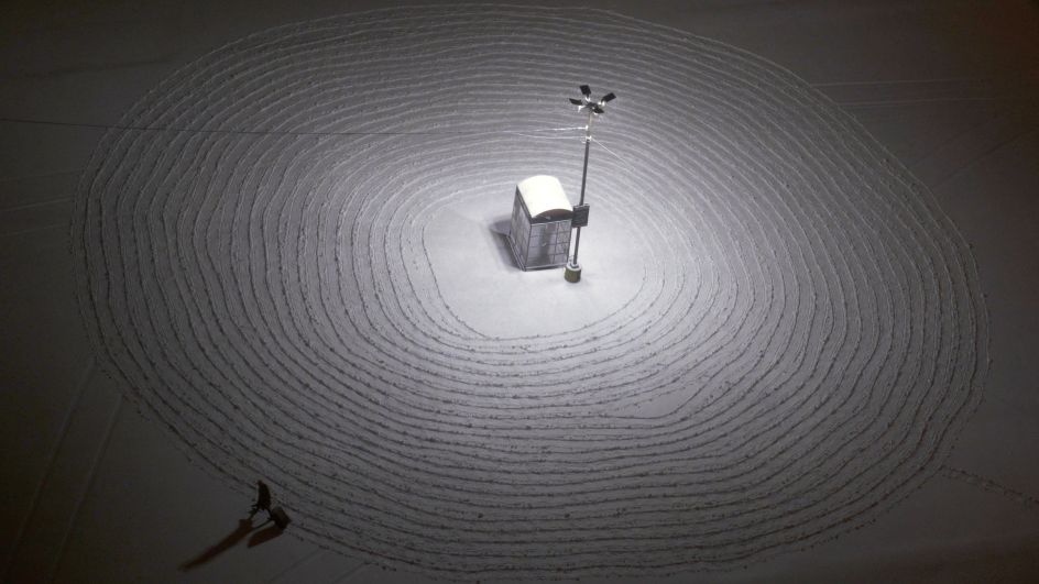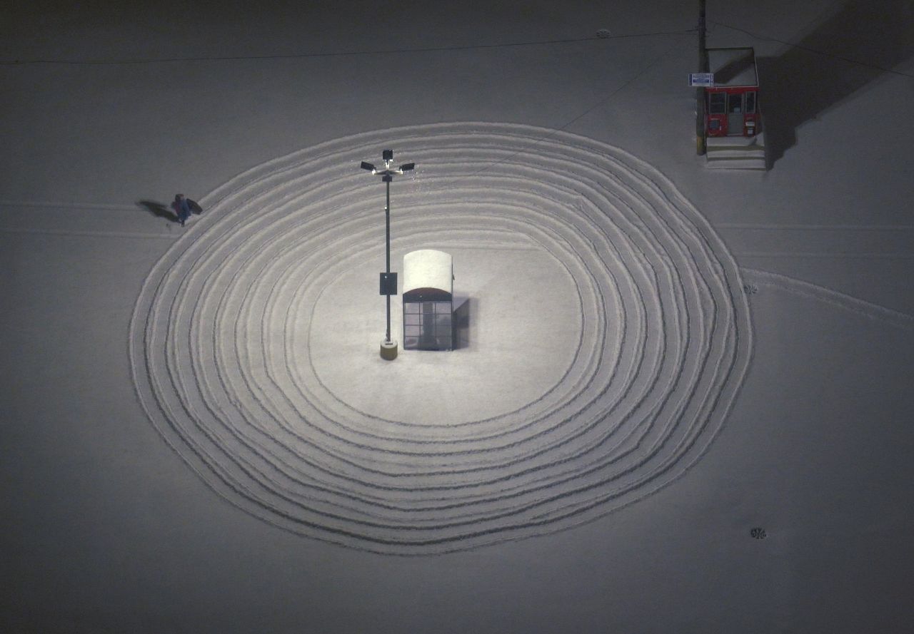 While she waits to travel from California to Beijing once again, Yuge has expanded this video series into a new project that draws on her longing to return home. Titled Moon Drawings, these concentric circles etched into the nighttime snow by Yuge dragging a suitcase communicate her yearning to travel to her homeland.