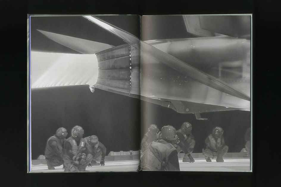For the cover of Incoming, the agency used a night vision image, which was printed using metallic ink to create a beguiling and haunting sheen. “Equally seductive and brutal, reproductions of stills from the video installation span double page spreads and are juxtaposed by earlier analog photographic works,” the studio adds.