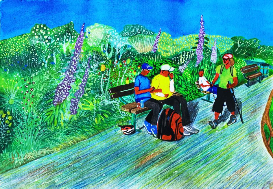 "I like to capture the moments and narratives occurring around me as I am most interested in real life," he tells us. "Hand-drawn observational images are combined with the digital in depicting landscapes, architecture, animals, food and humans, both individually and in crowds."