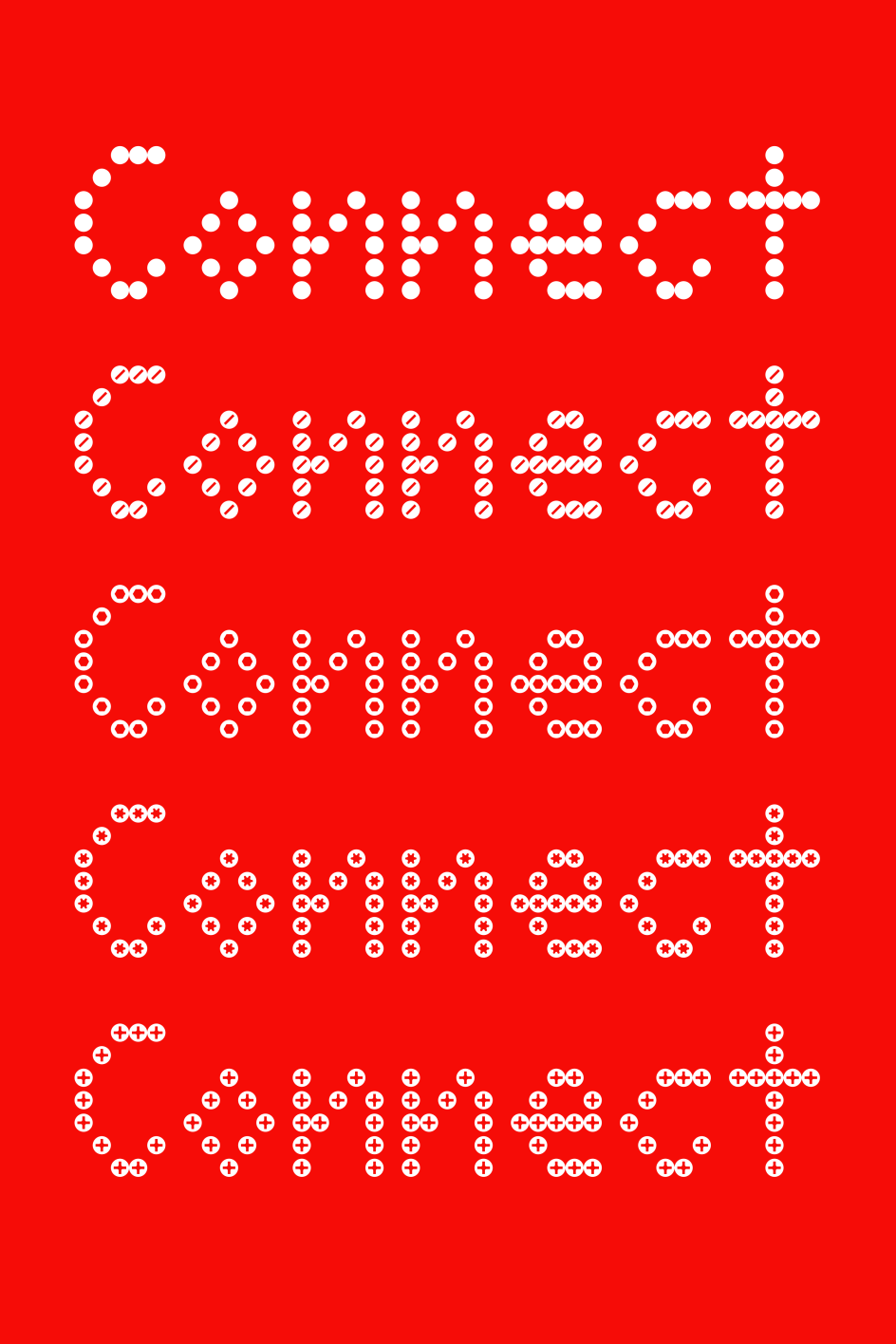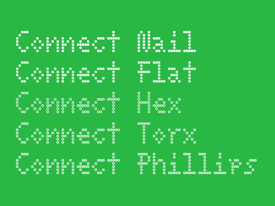 More than just a gimmick, ABC C-o-n-n-e-c-t packs a lot of functionality you would expect from a new font. It's available in five styles inspired by different types of screws – including Flat, Torx, Hex, Nail, and Philips – as well as monospaced and proportional variants. It may also be the world's first Italic dot font.