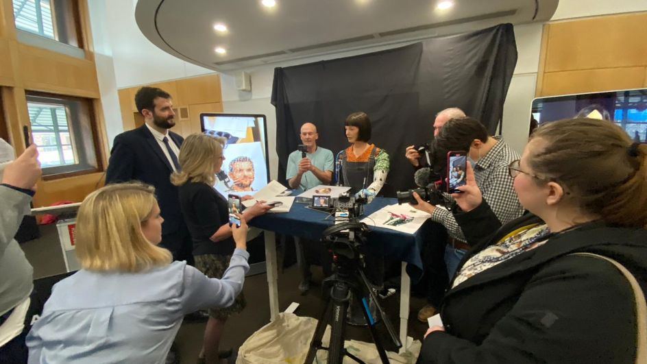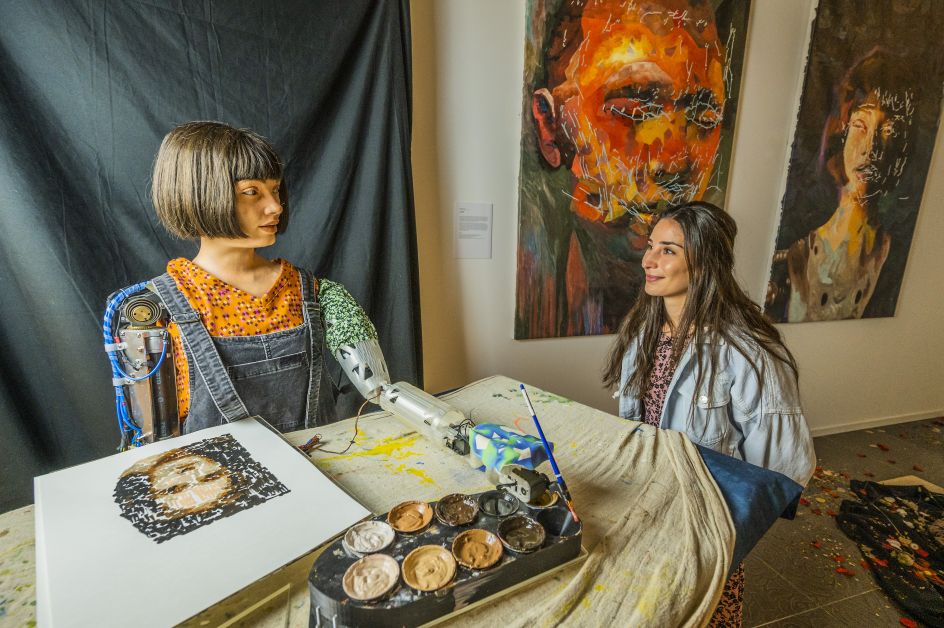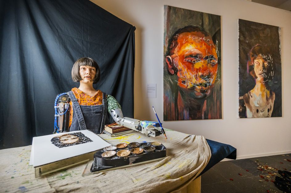 Running until 3 July 2022, Leaping Into The Metaverse draws on Dante's concepts of Purgatory and Hell to explore the future of humanity in a world where AI technology continues to encroach on everyday human life. It also showcases Ai-Da Robot's latest groundbreaking development: a new cutting-edge painting arm which allows it to paint from life in the same way as a human artist.