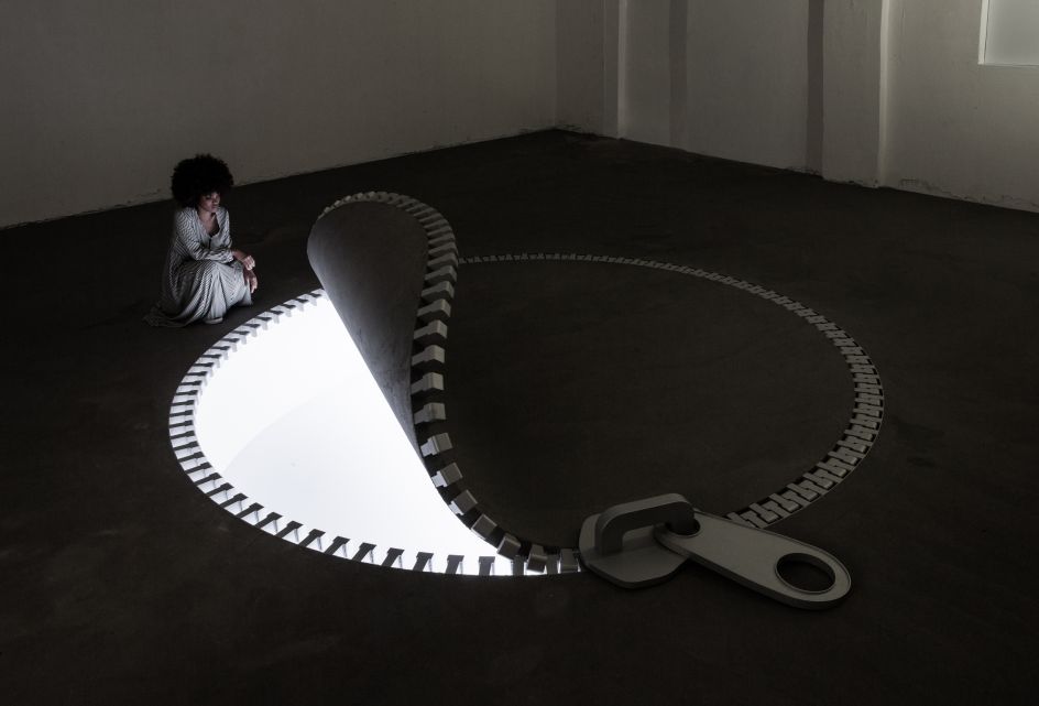 "Through the repeated use of the zipper, we have opened up the fabric of a seemingly historic Milanese building to playfully re-imagine what lies behind its facade, floors and walls. Ethereal light pours through each opening, filling the space with colour and filling the work with a sense of positivity and potential."