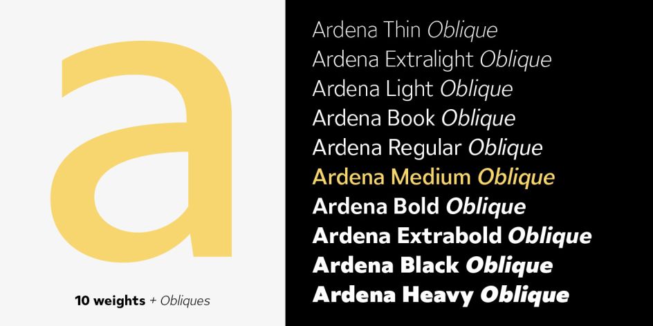 Ardena can be tested with the free Medium style and is available at a 60% reduced price at MyFonts and Fontspring until 19 March 2021.