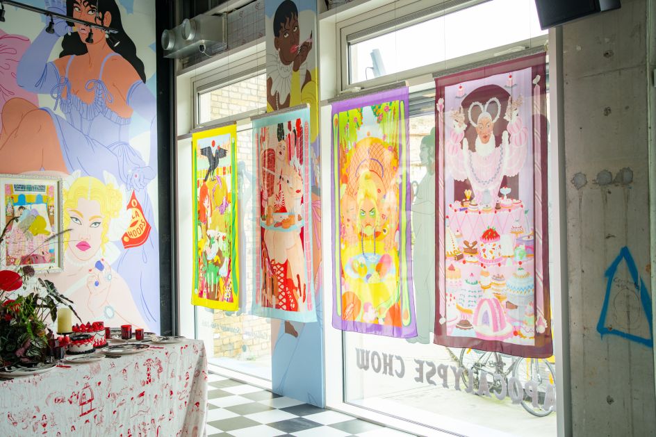 The exhibition consists of an immersive installation and series of dinners – all designed by Laura – imagining a feast at the end of the world. It's a unique and intoxicating mix of intricate watercolour, gouache and pen imagery along with a Bacchanalian-inspired table-scape and installation.
