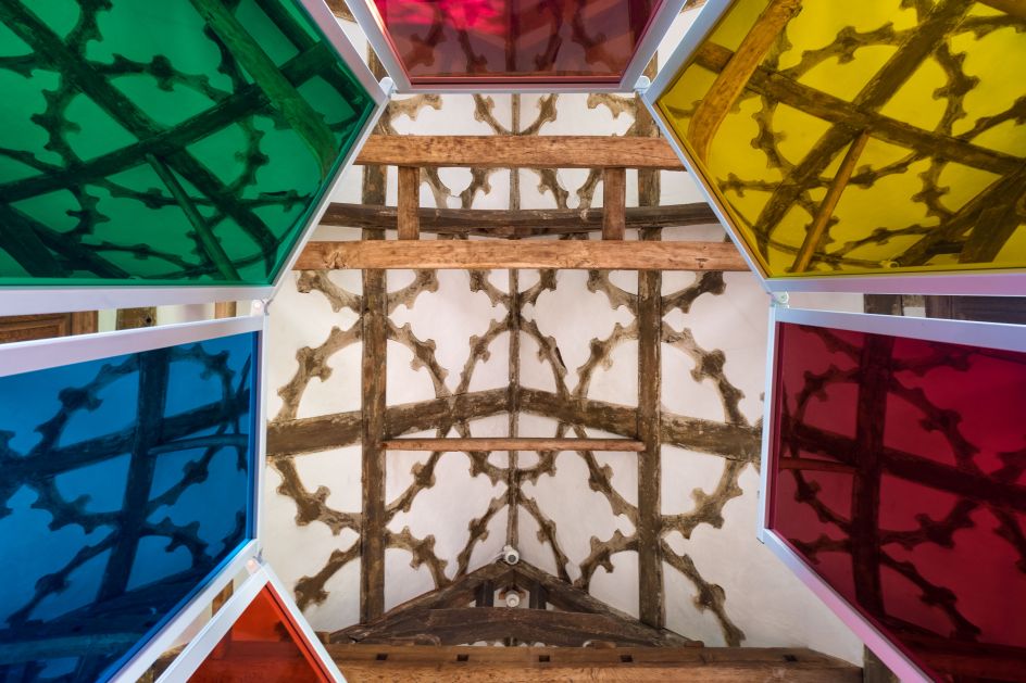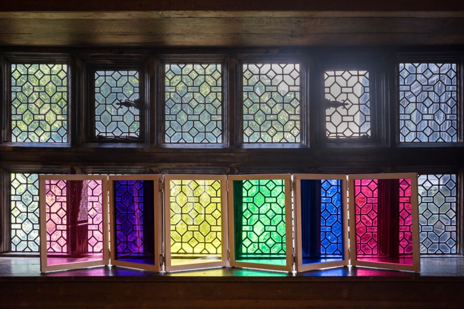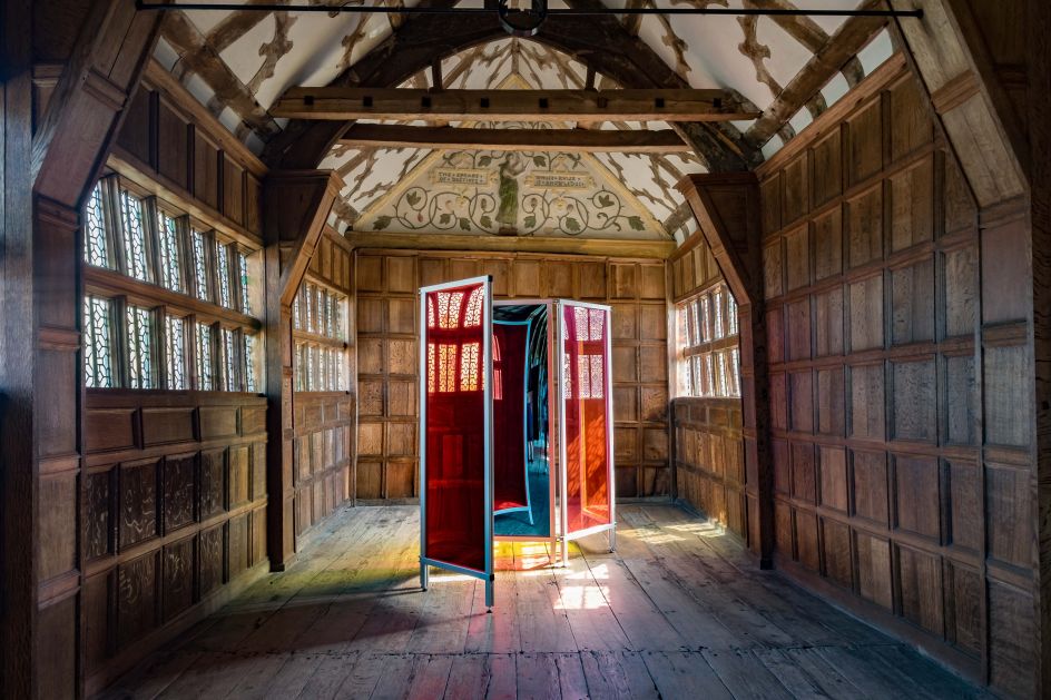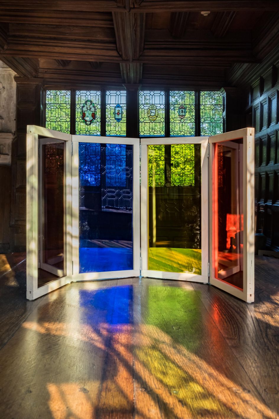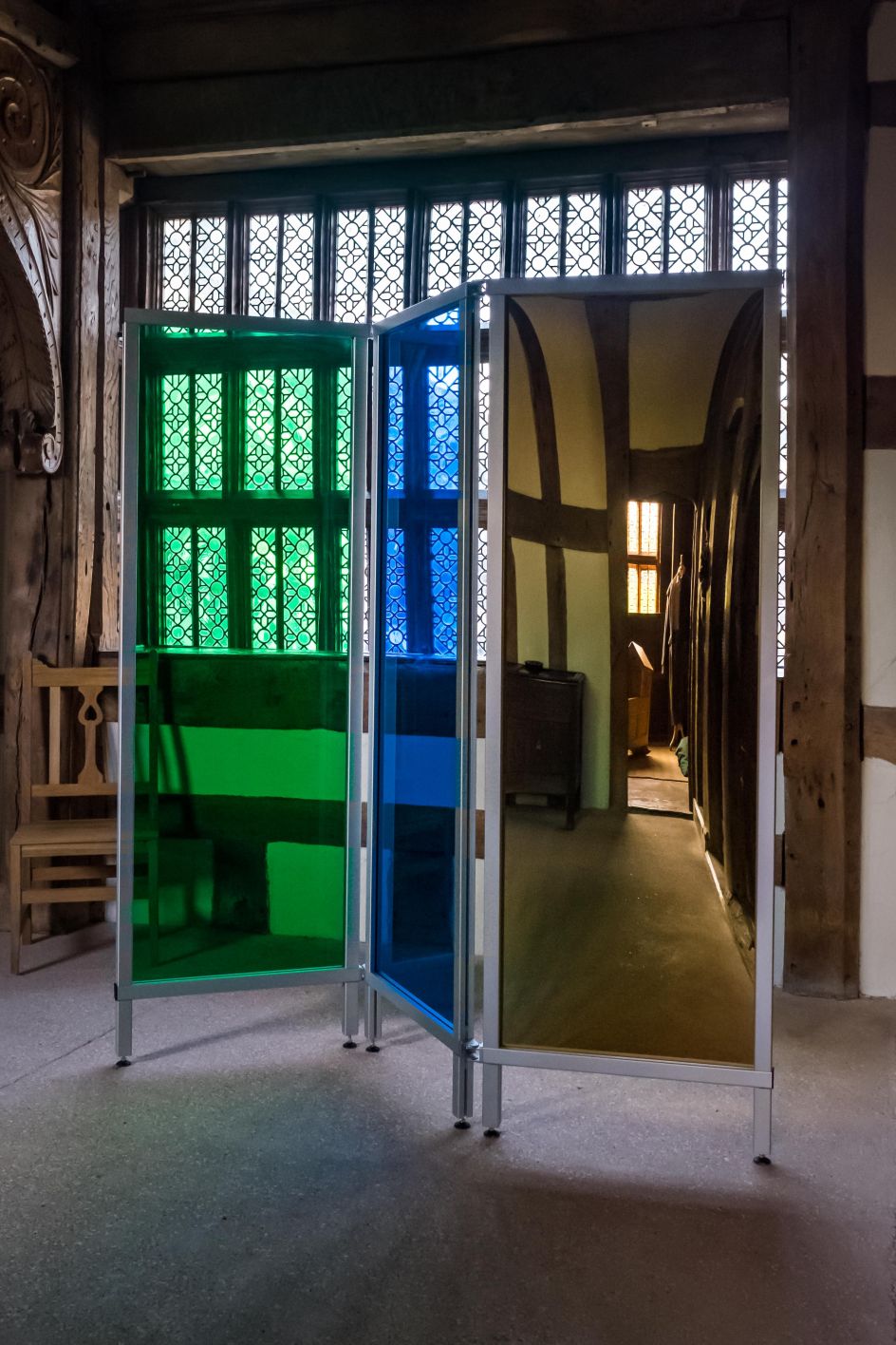 "These soft and varied hues create historical ‘colourways’ which I have used to create a series of installations which visually alter how visitors will see the many different spaces in the Hall. Through the constantly changing natural and occasional sunlight, the reflective materials I’ve used will highlight elements of Little Moreton’s architecture which might ordinarily go unnoticed, or be overlooked."