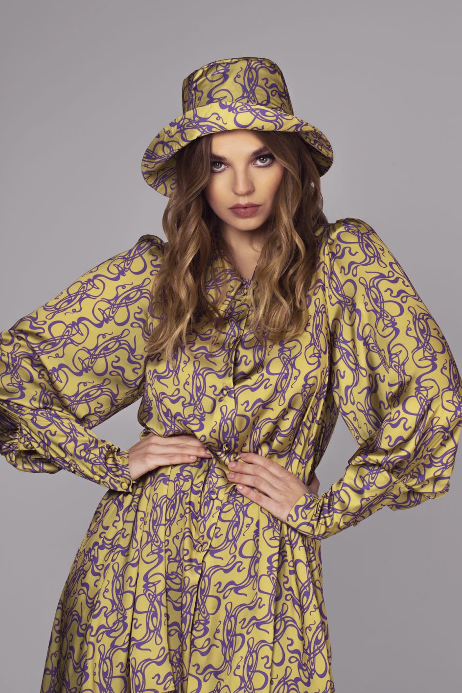 The debut collection from Hula "features a combination of modern forms in floating fabrics and nostalgic bespoke prints drawing on art and culture," according to the brand. The collection is a mix of "statement tailoring, retro-inspired dresses, updated smock styles as well as statement accessories such as the bucket hat and iconic 70s scarf."