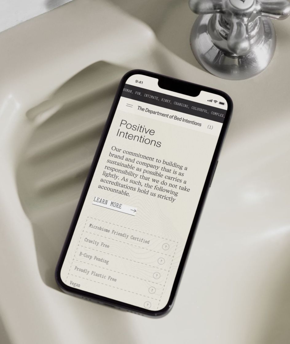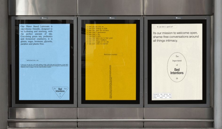 "The Department of Bed Intentions shakes up the competitive market of modern sexual wellness by carving out a new category," explains Jessica at Blurr Bureau. "With so much sex currently saturating the market, the challenge lay in how we could position this brand to be the only one people want to reach for in the bedroom."