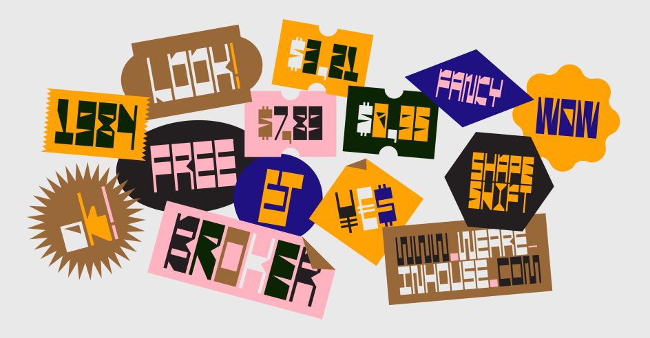 For those interested, you can use the variable control to try different styles to give shape to your words. Uppercase characters across all styles are contained in equally sized rectangles, making them delightfully easy to stack, mix, and match. That means it's perfect for creative projects, posters, funky packaging, flyers, motion displays, and "fearless" branding.