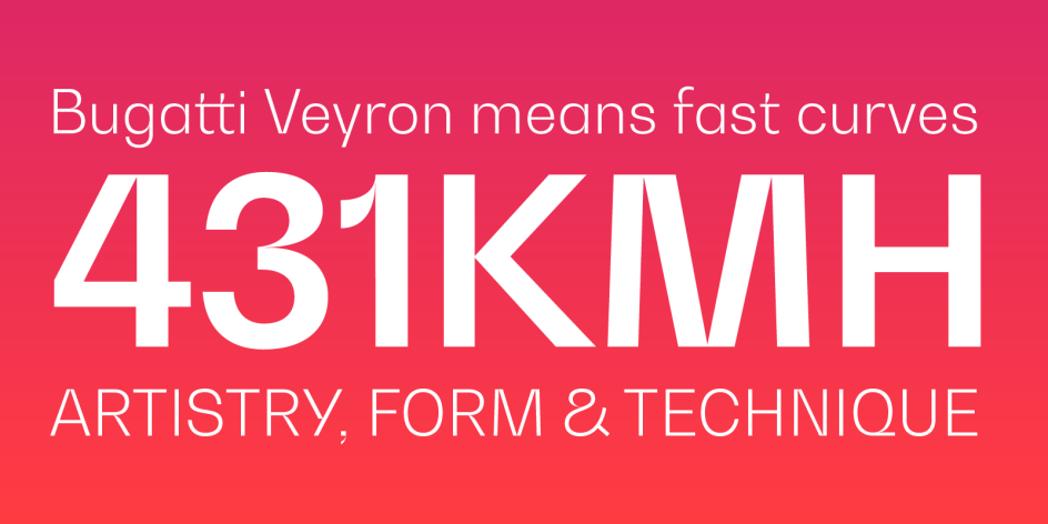 Pure shapes and fast curves gracefully coexist within the letterforms of this versatile font family, instantly capturing the viewer’s attention when used in large point on displays, signage, and advertising layouts.