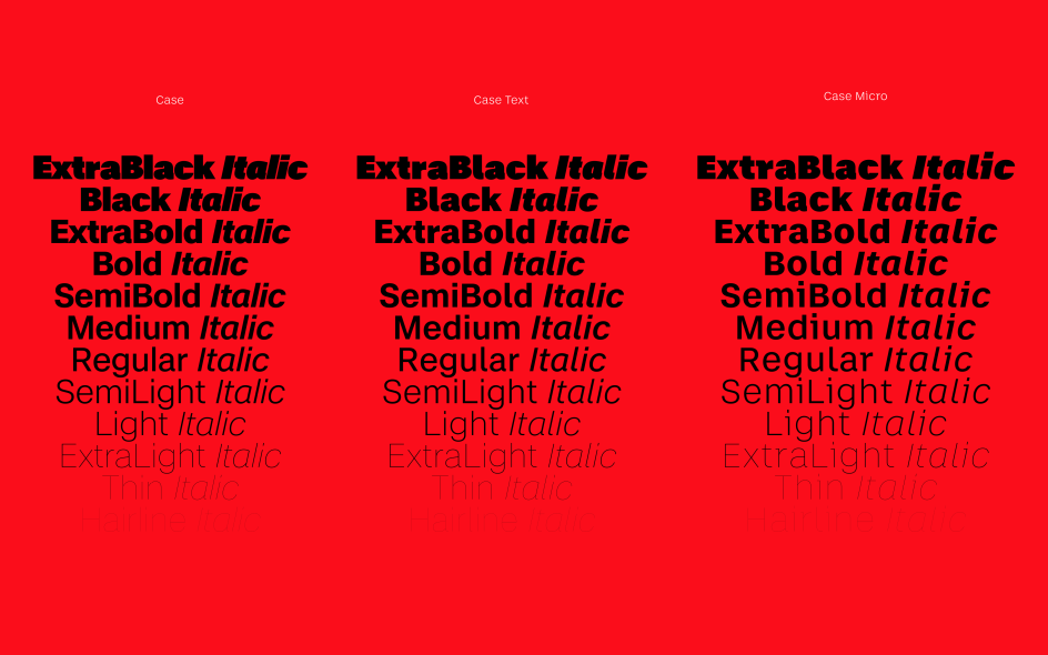 "Case is full of know-how and little surprises with a no-nonsense personality," he adds. "It's a breath of fresh air in an otherwise bloated font genre, and we believe it has the potential to become a classic of the future."